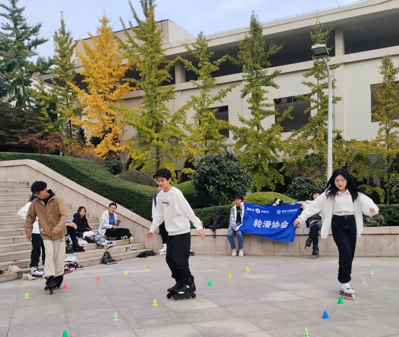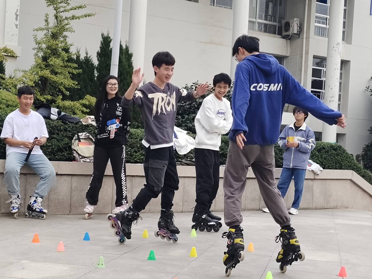 tyc1286太阳成集团轮滑协会于11月9日下午在弘毅广场举行“轮转青春”速桩比赛。本次比赛由协会负责人李宛育同学筹备组织,比赛形式包括速桩组,刹停组,参赛人员覆盖各年级喜爱轮滑运动学生以及2021级轮滑协会成员。赛前,协会组织协会成员观看了由校轮滑协会表演的花样表演,随后进行趣味比赛以及热身活动。