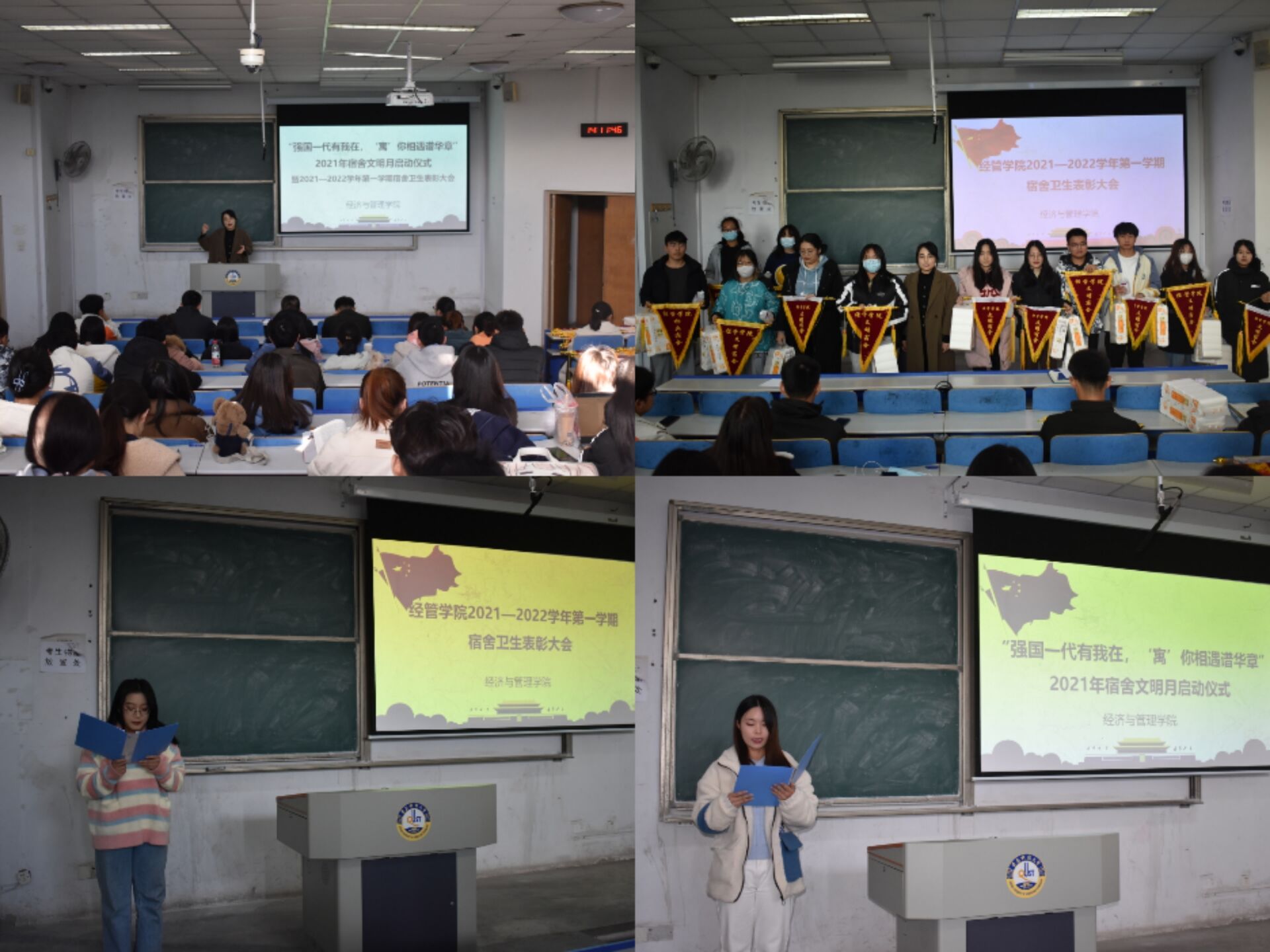 为贯彻落实党的十九届六中全会精神,坚定“四个自信”、增强“四个意识”,充分认识党的百年奋斗的历史意义和“十个坚持”的历史经验,切实把会议精神贯彻到推动校园守正创新、爱国爱党的文化建设中,塑造明亮清雅的宿舍环境,展现tyc1286太阳成集团同心同德风气,增强经管学子成为时代先锋、民族脊梁理想信念,11月30日,tyc1286太阳成集团于弘毅楼E303教室举行“强国一代有我在,‘寓’你相遇谱华章”宿舍文化月启动仪式。