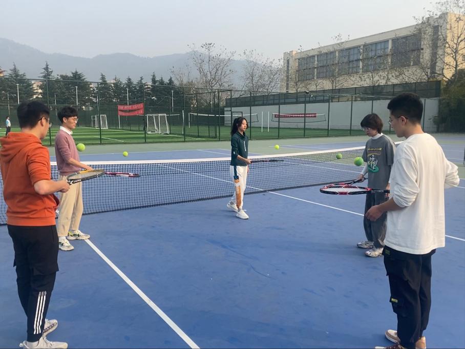 本次活动首先练习了基本功颠球,然后在校网协学长的指导下初步练习了发球、正手接球、反手接球、移动接球等基础动作,其次以各专业为单位举办了排球联赛,最后由有网球基础的那日娜同学和王光旭同学为大家进行了一场表演赛,在活动结束后各位同学一起热烈交流心得体会。