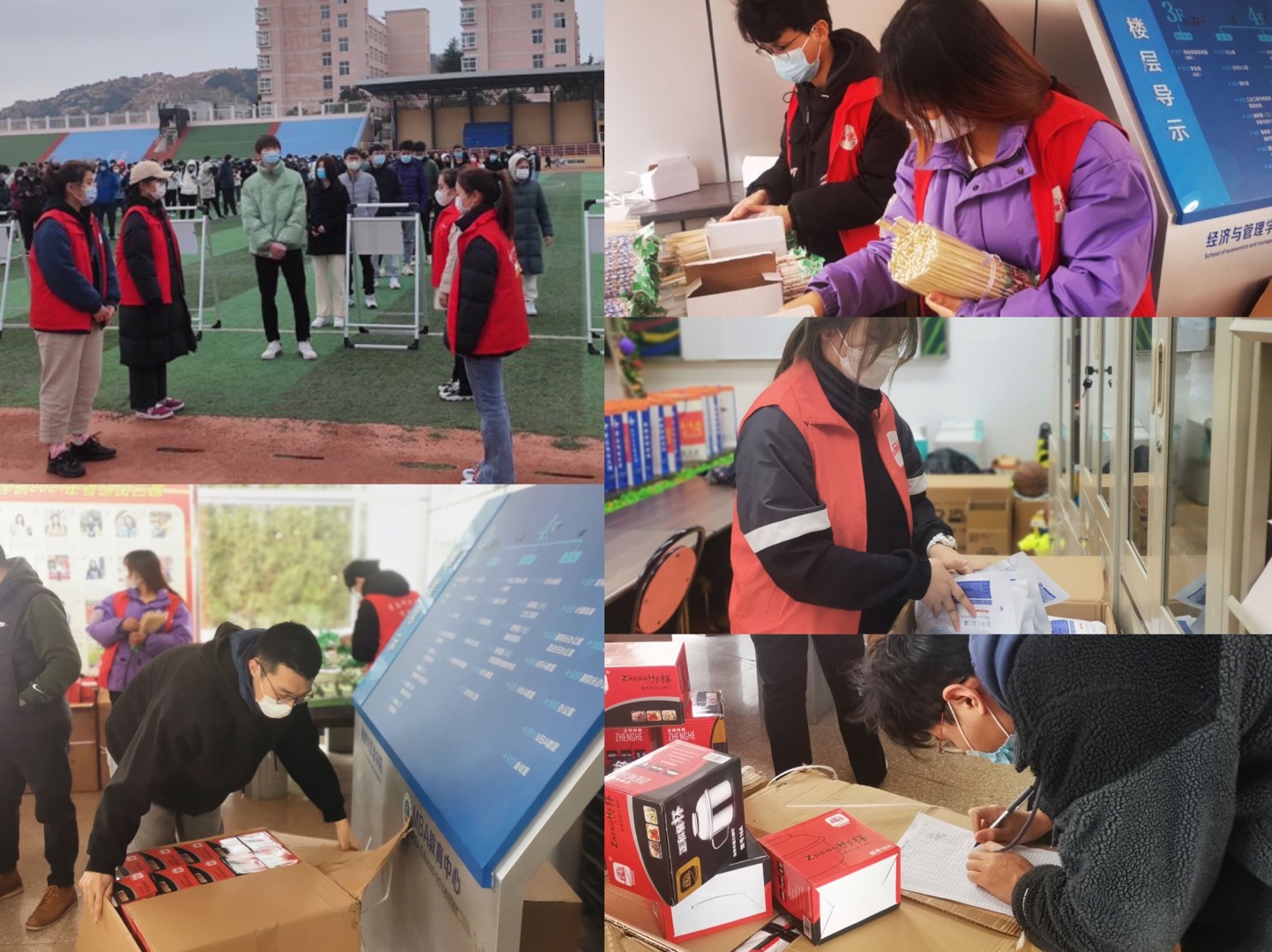 自学校封闭管理以来,对学生的关心关爱从未停止,学校积极筹集防疫资源,为每位学子准备好防疫物资。“老师放心,所有物资,我们一定会不落一人的交到每位同学的手中”。分发物资要细致且尽心,志愿者迅速集结,自发组成志愿服务队伍,将将消毒湿巾、体温计、饭盒等各类物资送至每一位同学手中。“他们有责任,有担当,学校防疫措施的有序进行,离不开志愿者们的无私奉献,也是他们时刻提醒着我们:疫情防控人人有责。”不少师生也对志愿者们表达了真诚的感谢与真挚的敬意。经管学子们正以自身实践助力疫情防控志愿活动,他们用奉献彰显青春担当,汇聚涓流之力,共克时艰。他们坚守岗位,随时待命,承担起属于自己的那份责任,写下抗击疫情的青春诗行。他们以一道道青春身影,用责任与担当筑起抗击疫情的坚强堡垒,全力书写抗击疫情的青春答卷。