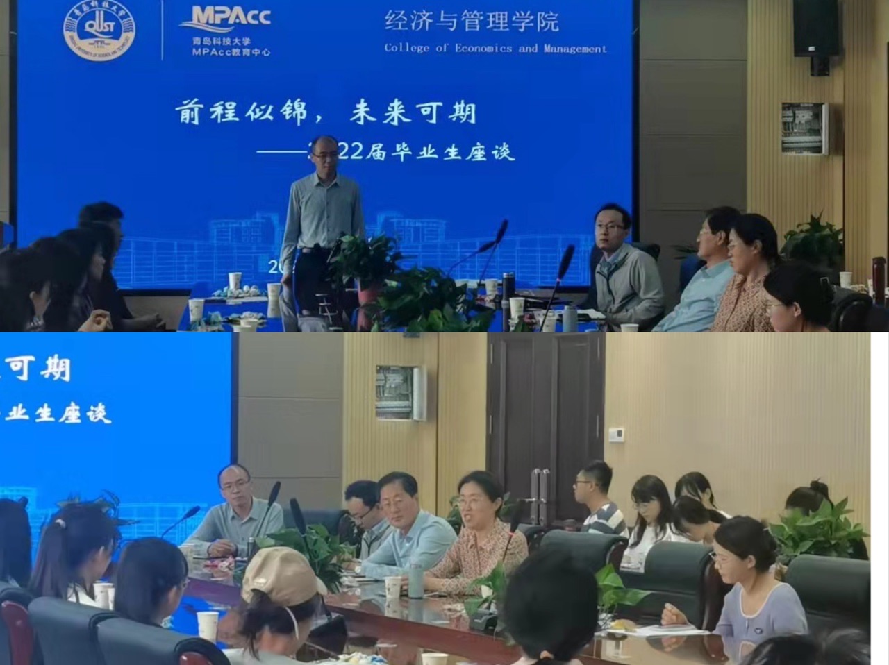 5月25日上午,tyc1286太阳成集团MPAcc教育中心于经管楼313会议室开展会计硕士毕业生座谈会活动。党委书记李德成、MPAcc中心副主任祝兵、会计硕士指导教师张占贞、张先敏及2022届毕业生参与座谈会。MPAcc教育中心主任于培友主持座谈会。