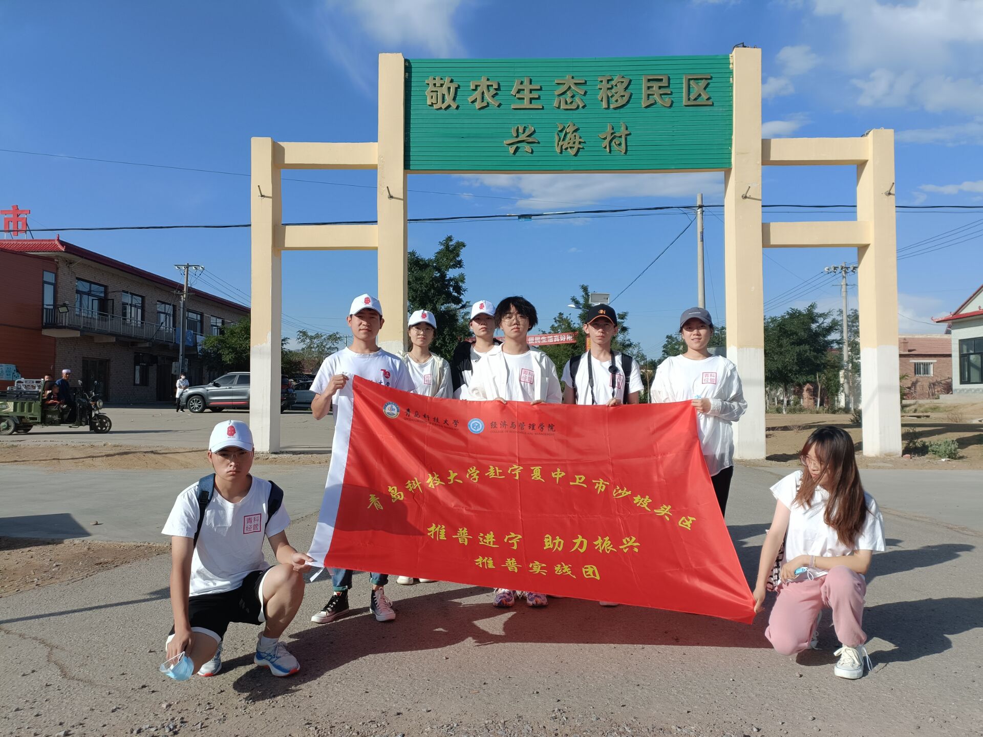 为满足先进生产力和先进文化发展的需要,深入助力巩固乡村振兴,大力推广、积极普及全国通用的普通话,消除语言隔阂,促进乡村经济政治与文化建设。7月25日,tyc1286太阳成集团赴宁夏中卫市沙坡头区“推普进宁,助力振兴”推普实践团走进宁夏中卫市沙坡头区兴海村,开展暑期三下乡“推普进宁,助力振兴”社会实践活动。