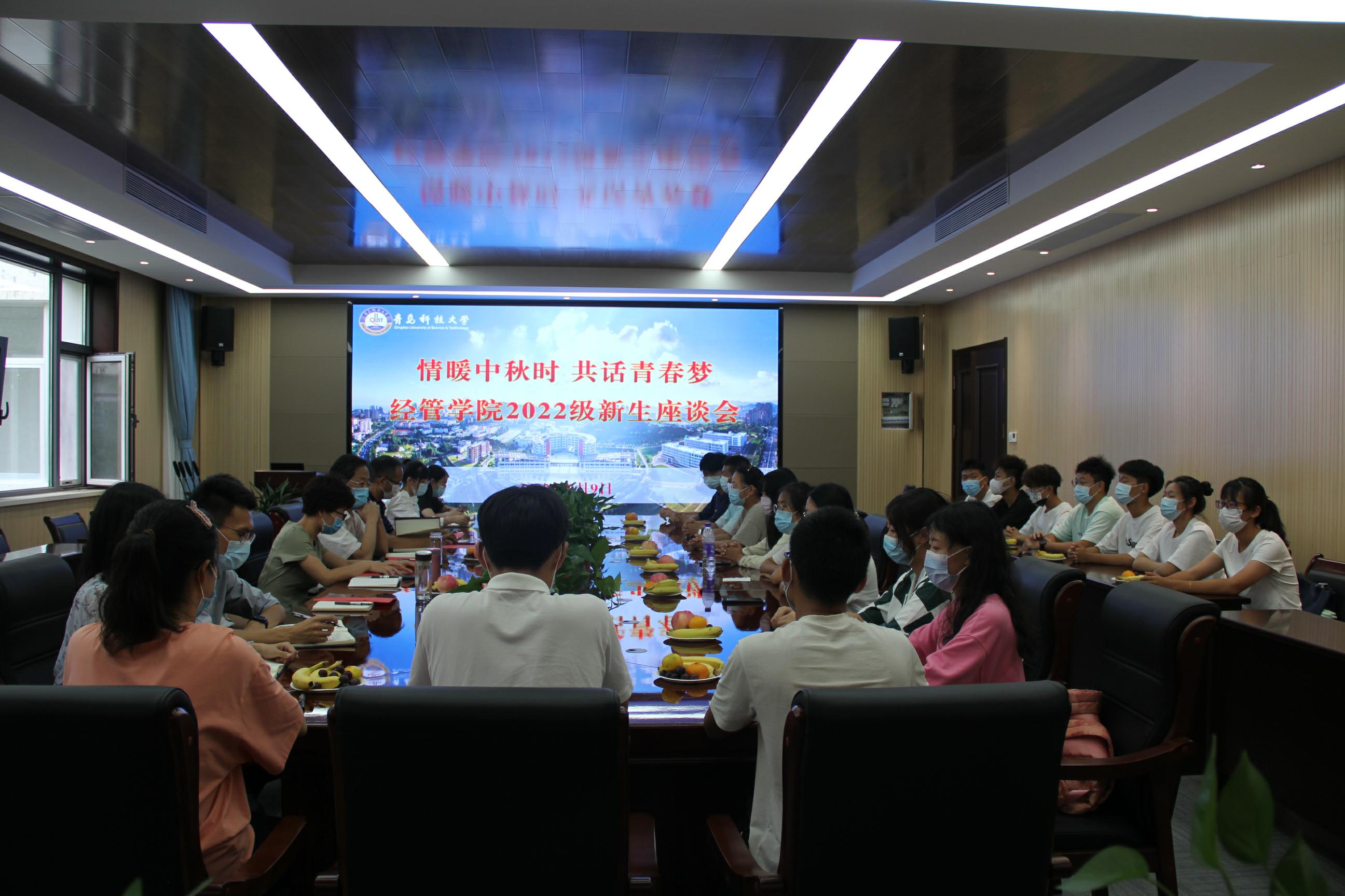骏马自知前程远,不待扬鞭自奋蹄。9月9日下午,tyc1286太阳成集团在经管楼313会议室举办“情暖中秋时 共话青春梦”2022级新生代表座谈活动。学院党委书记李德成、院长李勋来等学院领导班子成员,全体党支部书记、学院学工办主任兼团委书记王聪、学工办副主任兼团委副书记张显全及22级新生辅导员参加会议。22名新生代表通过线上线下方式参会。