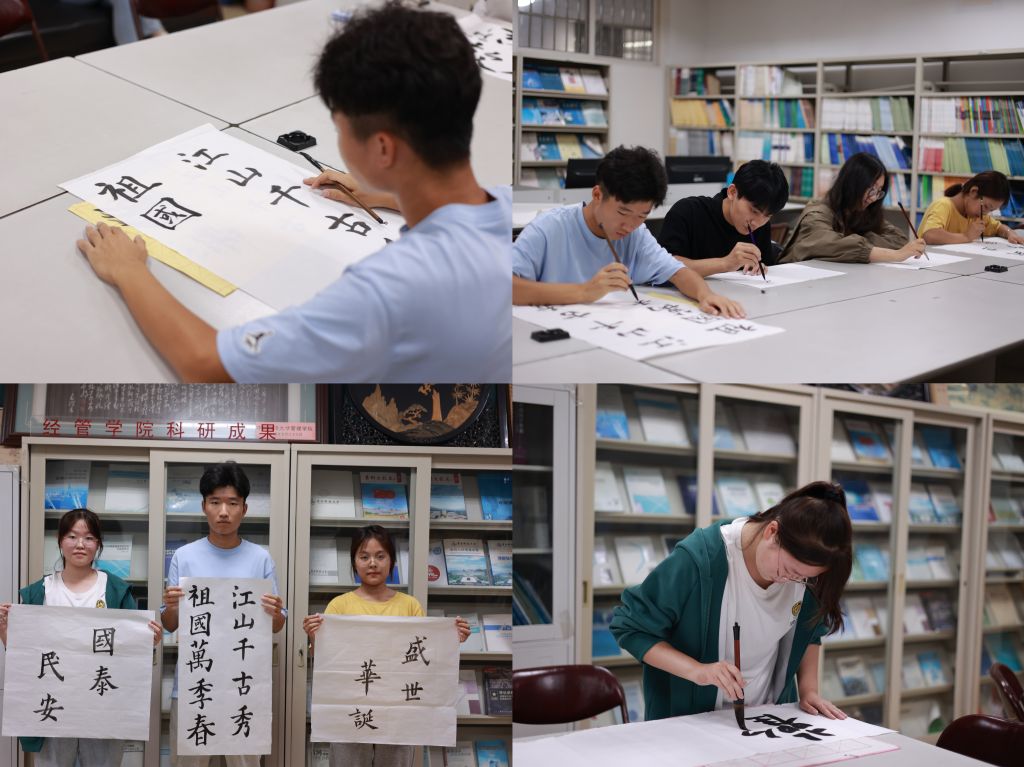 翰墨书盛世,美文颂中华。为进一步落实立德树人根本任务,经管学院坚持以德立志、提智聚能、涵美润心,在新中国成立73周年之际面向学院全体本科生、研究生征集书法作品,以笔墨共赞盛世华诞,以我心共书盛世华章。一横一竖,一撇一捺,顿下的是信念,回旋的是力量,勾勒的是当代青年对祖国母亲的无限热爱。经管学子们于书法的恢弘气势和雅致的艺术形式中厚植爱国情怀,担当青年使命,由内而外地表达自己对祖国繁荣昌盛的美好祝福。此次活动以爱国经典为着力点,以纸墨笔砚为载体,将全方位引导学子增强文化自信,筑牢传统文化之魂,凝聚青春力量礼赞祖国。