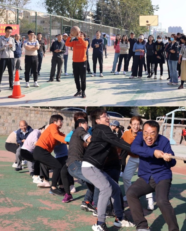 “踩气球游戏”一开赛即是一片欢声笑语,在“两人三足跑”、“背靠背夹球跑”项目中老师们两两配合默契十足。“二人跳绳接力”项目中,在身体协调力与团结协作的双重考验下,老师们勇创佳绩。在“投篮比赛”中,老师们凝神汇聚、全神贯注,场外的阵阵加油声不断。拔河比赛更是热闹非凡,老师们齐心协力,经过激烈的角逐,最终“工业+物流+城管”组代表队获得拔河第一名,获得团队总冠军。