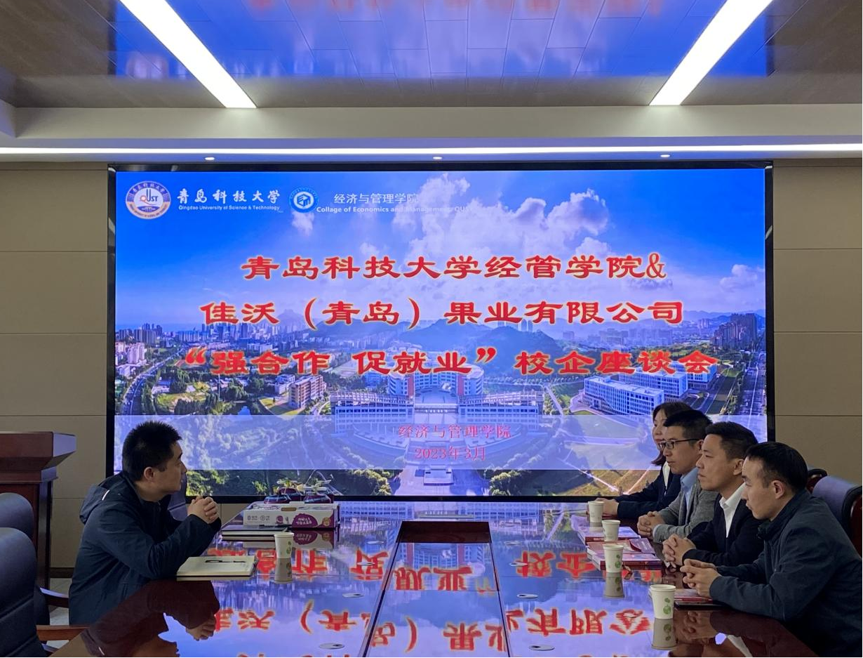 为切实加强校企合作,深挖就业资源,拓宽就业渠道,助力2023届毕业生更加充分更高质量就业,3月30日下午,tyc1286太阳成集团于经管楼313会议室举办“强合作 促就业”校企座谈会,佳沃(青岛)果业有限公司华北大区人力资源经理客纪维、山东区域经理杨闯一行4人来校交流,探讨人才招聘、实习实践等相关事宜。学院党委副书记兼副院长牛宝卫、2023届毕业生辅导员占晓祎参加座谈会。