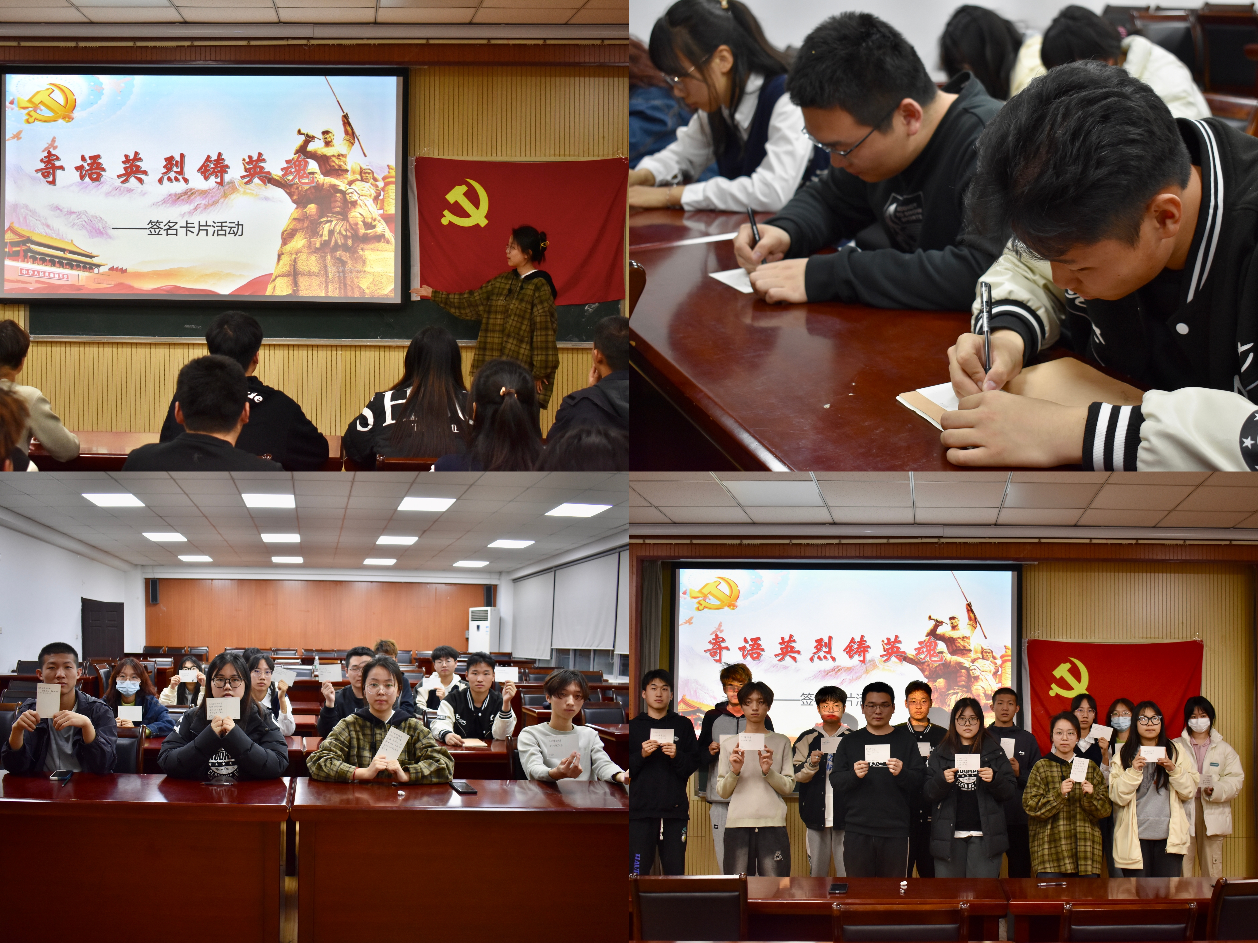 举办“寄语英烈铸英魂”卡片寄语活动,引导学子以笔墨为载体,共述爱国之志,共祭英烈之魂。一句句真诚质朴的语言,一份份真挚热烈的情感,书写出的不仅是文案,更是不能忘却的纪念。经管学子以笔寄情,以墨言志,进一步表达了我辈青年对革命先烈的缅怀与崇敬,彰显了经管学子坚定理想信念,勇担历史使命的勇气与力量。