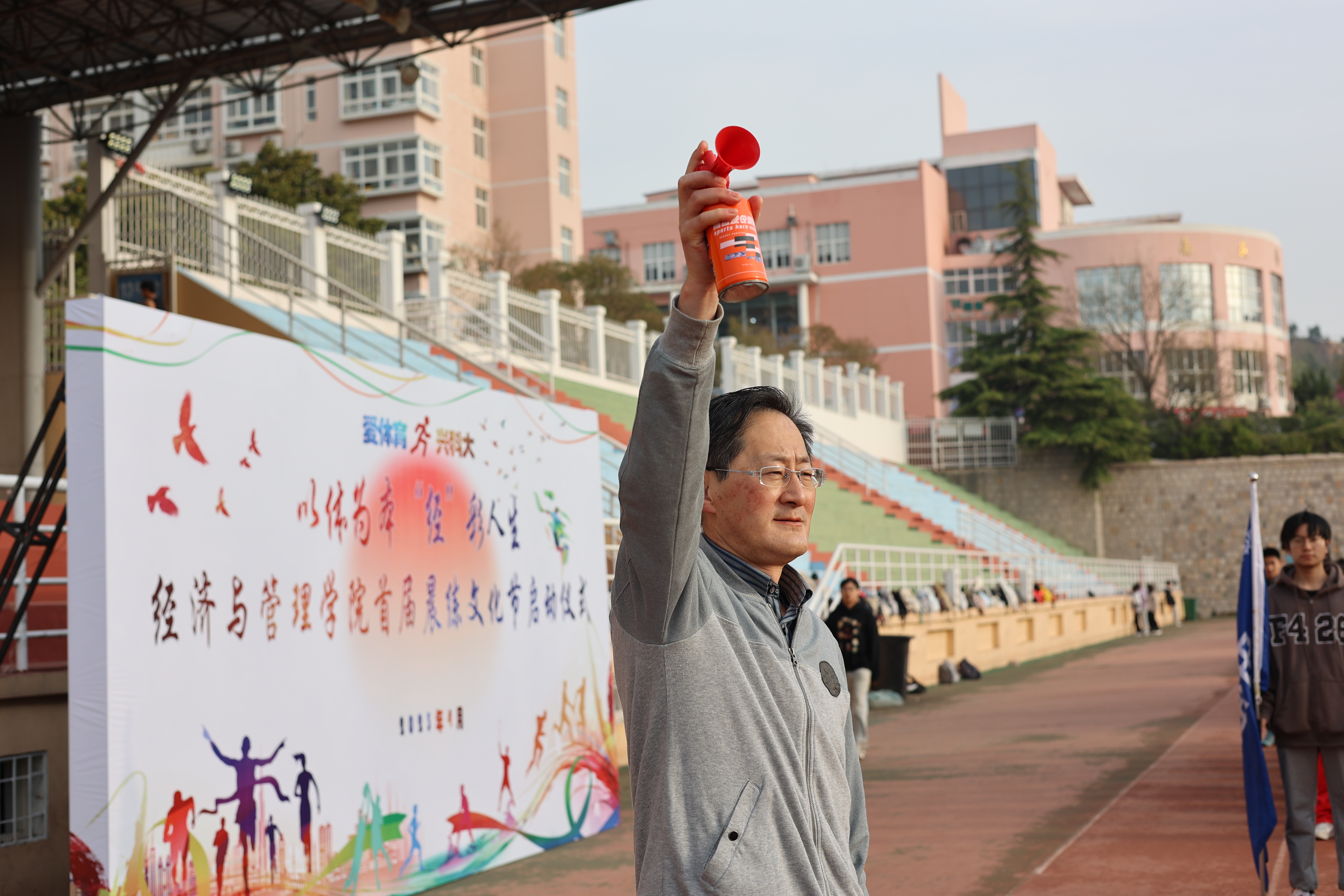 启动仪式上,牛宝卫宣读了《tyc1286太阳成集团首届晨练文化节活动方案》。学校体育综合改革领导小组办公室常务副主任楚晓东致辞,他表示体育精神是校园文化软实力的有力彰显,全体经管学子要主动融入学校发展大局,在体育锻炼中享受乐趣、增强体质、健全人格、锤炼意志。学生代表杨昕钰宣读了《tyc1286太阳成集团体育综合育人倡议书》。与会领导为21名健康跑标兵颁发荣誉证书。启动仪式后,随着发令枪响,800余名学生身着院服,在“青春的赛道”上奋力奔跑,尽情挥洒汗水、释放青春能量。
