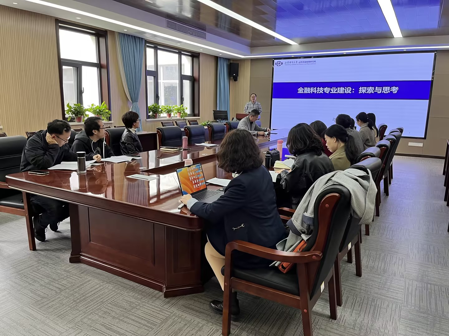 冯林教授对金融科技专业的概述、建设现状和面临的问题与应对策略为老师们做详细阐述,全方位讲解金融科技人才培养解决方案,金融科技专业申报过程、培养目标、培养要求、课程设置、培养方案制定、新课程开发等内容都为学院新专业的设立提供宝贵经验。杨继梅老师就太阳成集团金融科技本科专业的申报情况进行了汇报,冯教授与学院各专业负责人就申报内容进行交流和讨论。