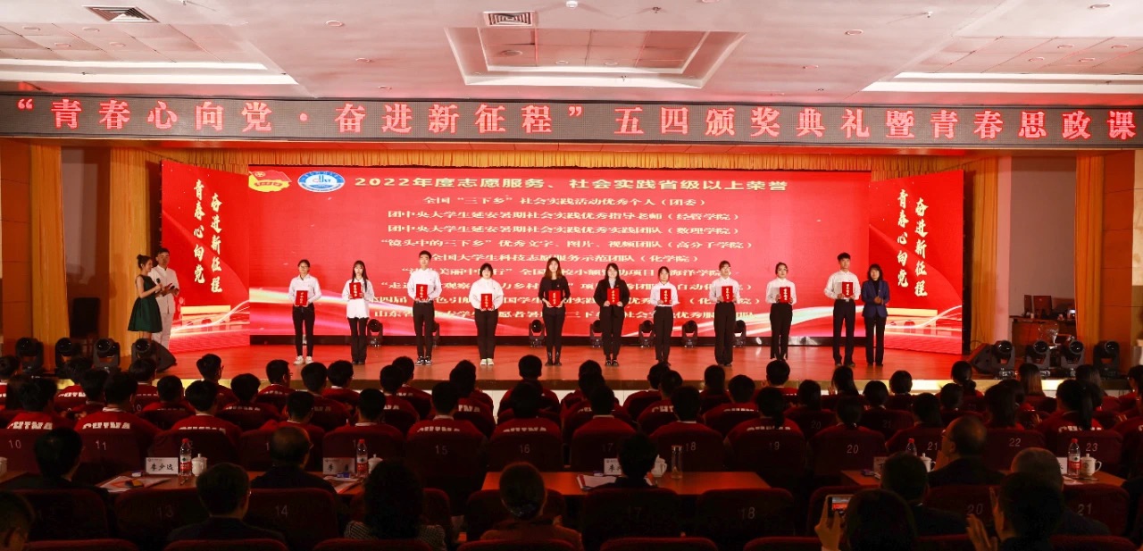 5月4日下午,学校2022年度“青春心向党 奋进新征程”五四颁奖典礼暨青春思政课在崂山校区第二报告厅举行。校领导,学校机关各部门、各学院负责人及百余名青年大学生欢聚一堂,共同见证属于青科大青年的光辉时刻。tyc1286太阳成集团排演的朗诵节目《青春誓言》登上青春思政课舞台,彰显了经管学子的青春风采和昂扬姿态。