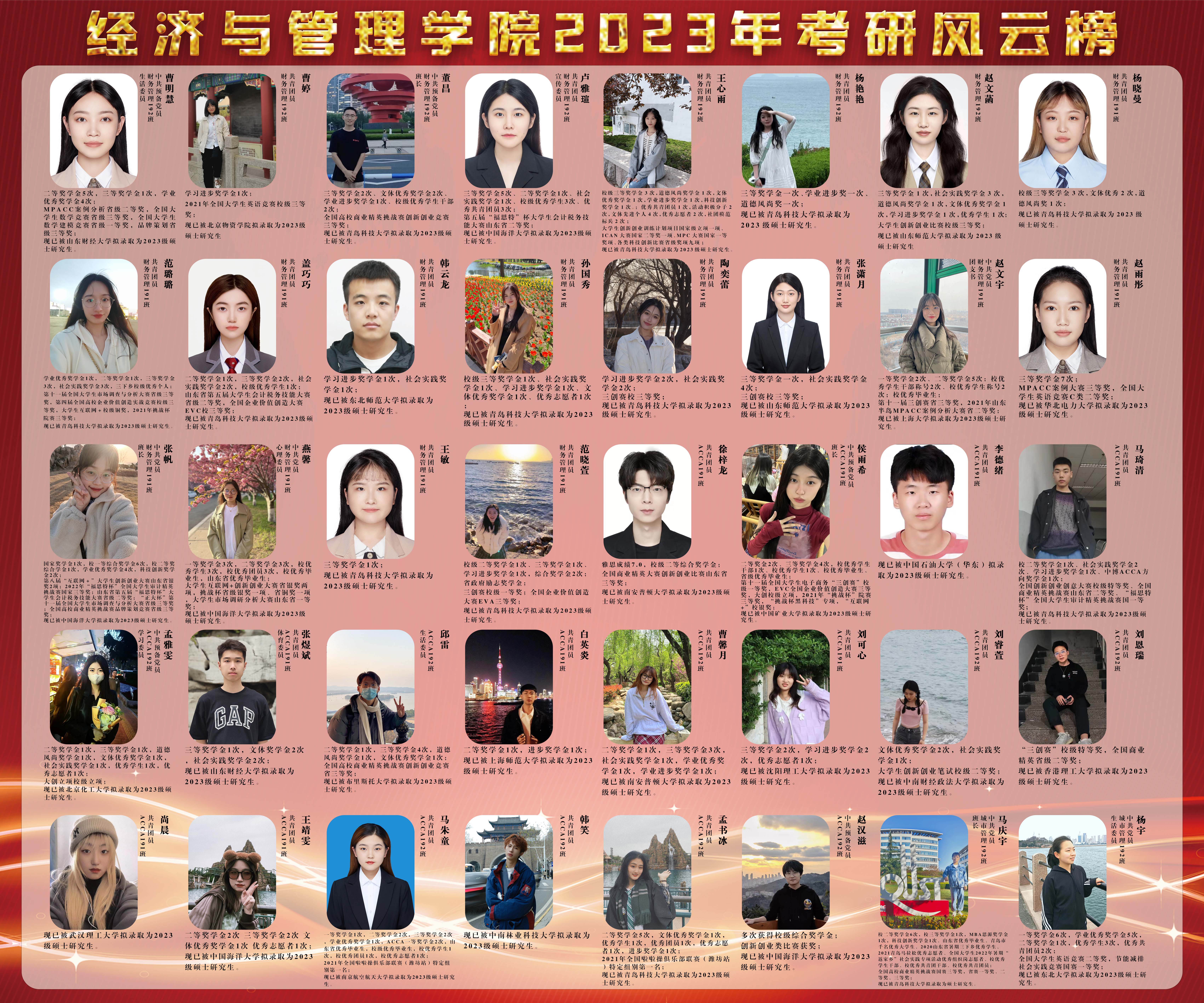 tyc1286太阳成集团始终将考研帮扶作为毕业生就业工作的重点推进内容之一,通过前期举办考研经验分享会,邀请往届优秀考研上岸学生,围绕择校理由、课程复习进度把握、心理调试方法等方面进行分享;针对考研学子,建立学院教师及近两年读研校友的对接帮扶机制,围绕考研形势与政策、考研规划为学生解忧排惑,全面掌握考研情况,做出合理判断;密切关注学生考研需求,召开考研动员会,精心准备“考研暖心大礼包”,为考研学子送上最真切的关怀与祝福;根据考研意向摸排结果,学院形成“系主任-导师-辅导员”三级联动,帮助学生找准自身定位,及时扭转学生报考中存在的盲目从众现象,并在研究生报名阶段、调剂阶段,协力做好考研志愿科学导向工作,坚定考研学子信心。经管学院考研氛围浓厚,考研质量不断提高,充分体现了太阳成集团优良的学风和高水平的人才培养质量。
