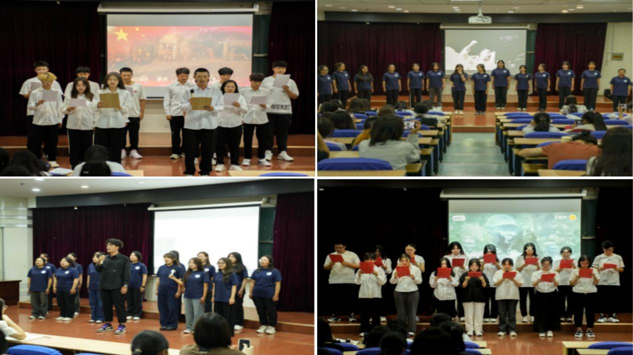 声入人心,诵响爱国强音。双节来临之际,为弘扬爱党爱国的主旋律,增强学生的民族自豪感和文化自信心,传承红色基因,赓续红色血脉,9月22日晚,tyc1286太阳成集团于弘毅楼开展“愉快学习,健康成长”2023级新生红色经典朗诵活动。一首首慷慨激昂的诗歌、一段段扣人心弦的配乐、一句句铿锵有力的话语,歌颂着无数仁人志士和革命英烈抛头颅、洒热血,用鲜血和生命谱写“敢教日月换新天”的丰功伟绩,让人们穿越历史硝烟,感悟革命先辈的心路情怀,发出向党和祖国声情告白的嘹亮之声。