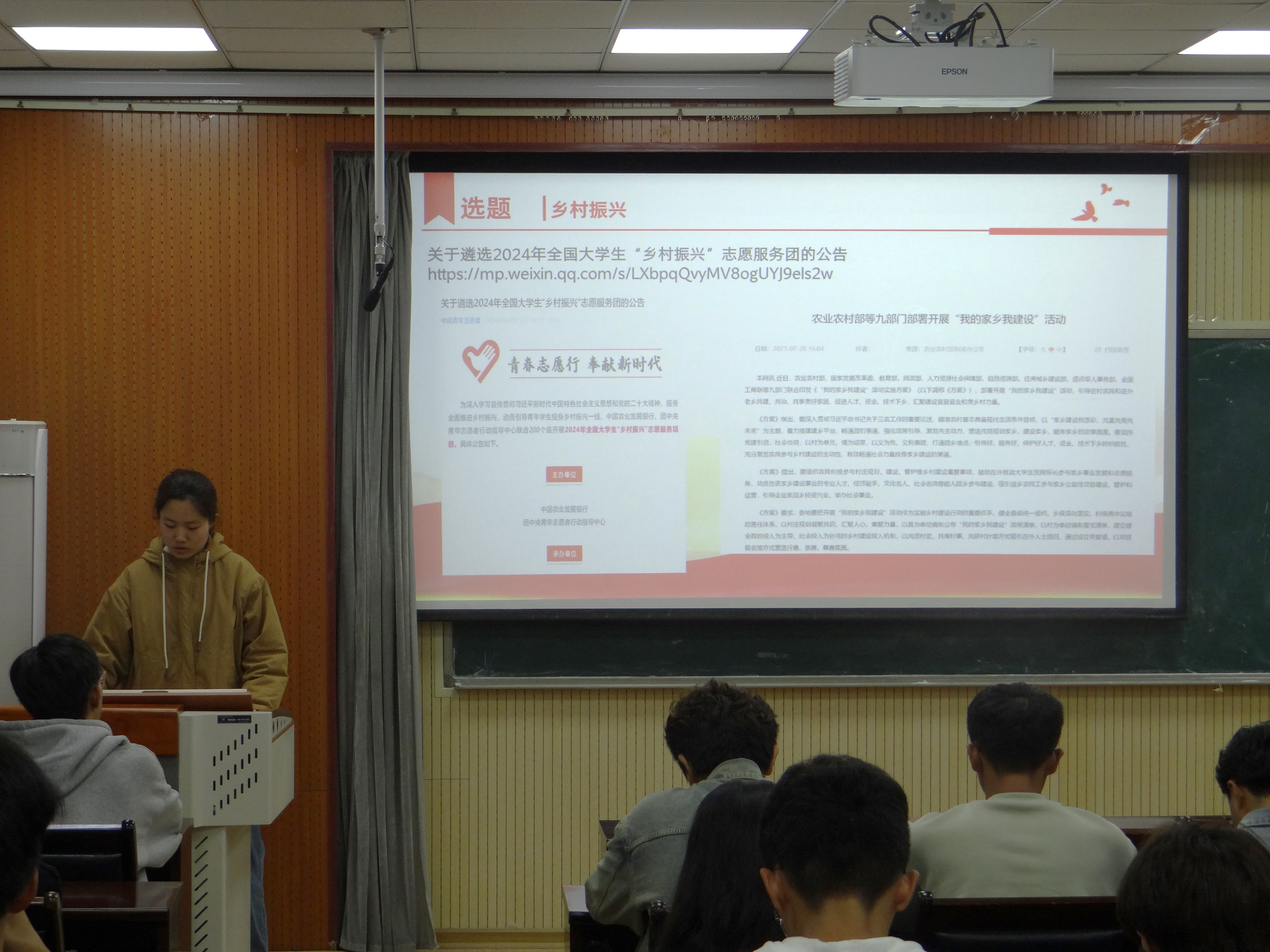 国贸专业的闫广振从三个方面分享了实践活动的获取渠道、流程以及方式方法等,鼓励学生多方面去参与实践活动,提升自我实践能力,肩负起为中国式现代化挺膺担当的青春责任。国贸专业的孙雨辰结合自身经验,从团中央专项活动的申报到如何开展进行详细的解答,她就申报时间、前期准备、申请技巧等进行了详细梳理,为同学们后续实践活动的开展描绘一幅清晰的蓝图。物流专业的牛志强就活动规划、团队分工协作以及后续的成果推广进行深入的讲解和剖析。基于自己对实践活动的深刻理解和切实的实践经验积累,做出极具针对性与专业性的指导,为同学们对实践活动的深度理解打开新视野。