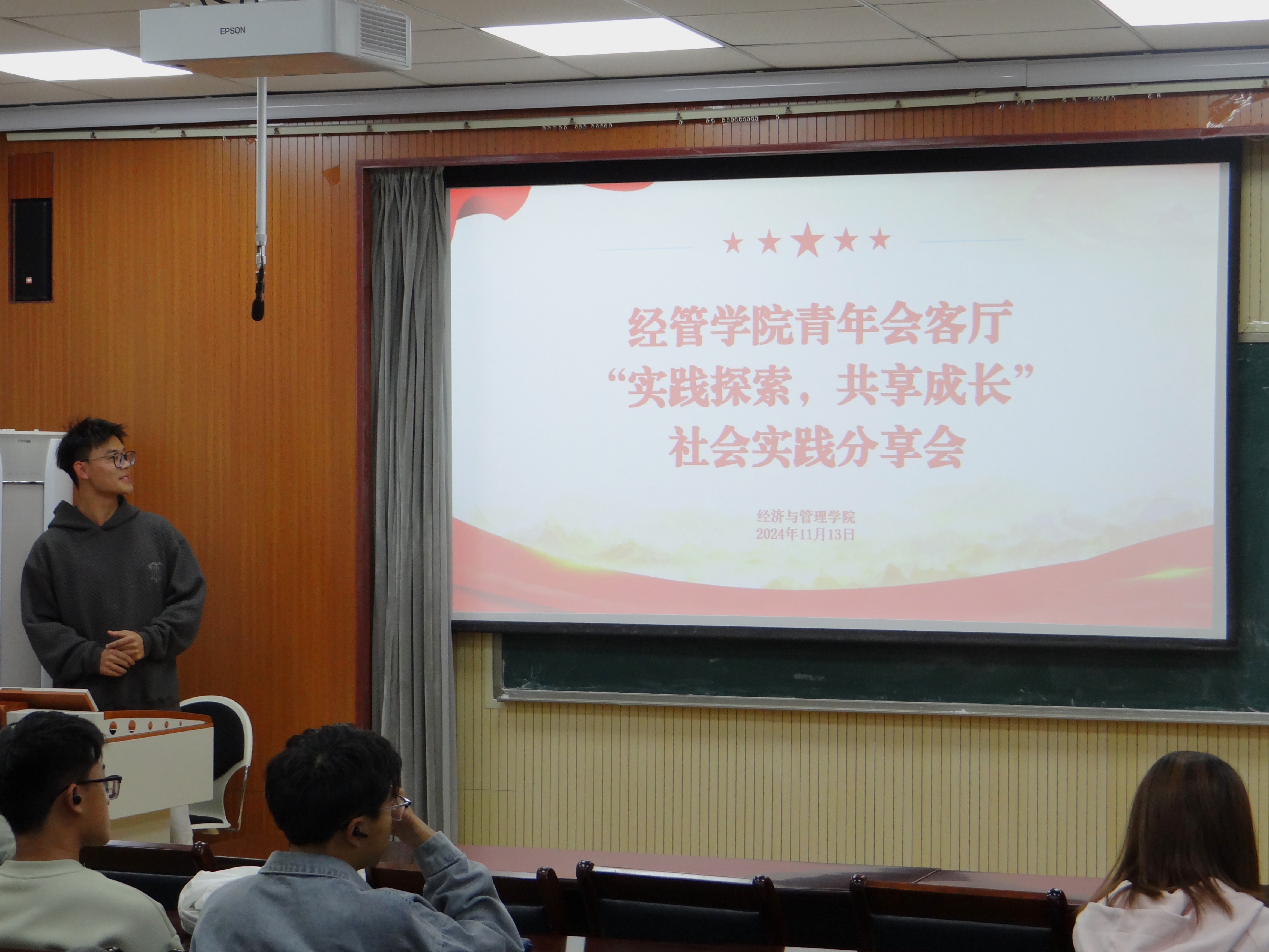 为进一步发挥青年会客厅的引领带动作用,汇聚全过程民主的重要活力,tyc1286太阳成集团团委紧扣服务青年的工作生命线,于11月12日晚在经管学院415会议室开展了青年会客厅系列活动之“实践探索,共享成长”社会实践分享会,本次分享会邀请了2021级的优秀学子进行经验分享,tyc1286太阳成集团2022-2024级本科生参加。