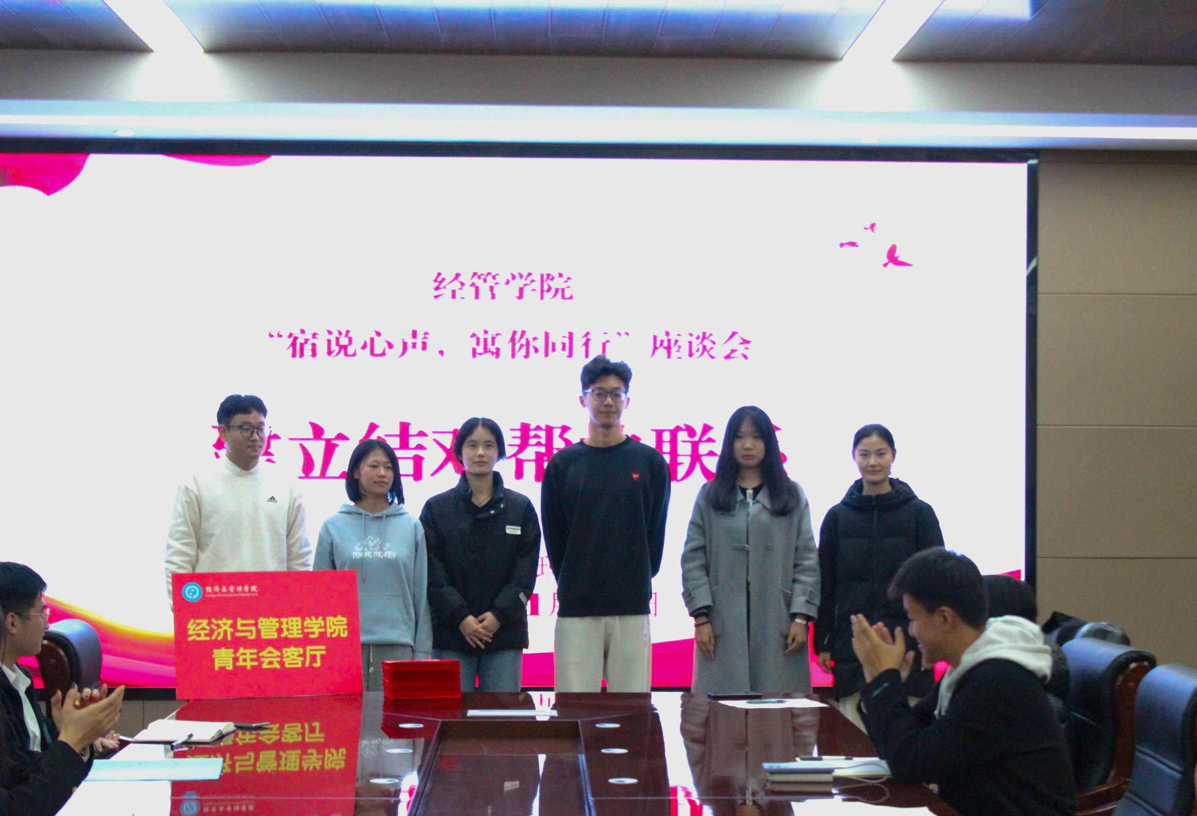 为深入发挥青年会客厅的思想引领与榜样示范效能,切实将“朋辈助力”与“青年互促”理念转化为实际行动,tyc1286太阳成集团团委积极响应校团委“我为同学办实事”号召,于2024年11月26日下午在tyc1286太阳成集团313会议室成功举办青年会客厅系列活动之“宿说心声,寓你同行”座谈会。本次座谈会邀请领跑学长、朋辈力量、学生会部分成员以及24级各宿舍代表共同探讨宿舍帮扶与成长发展之路。