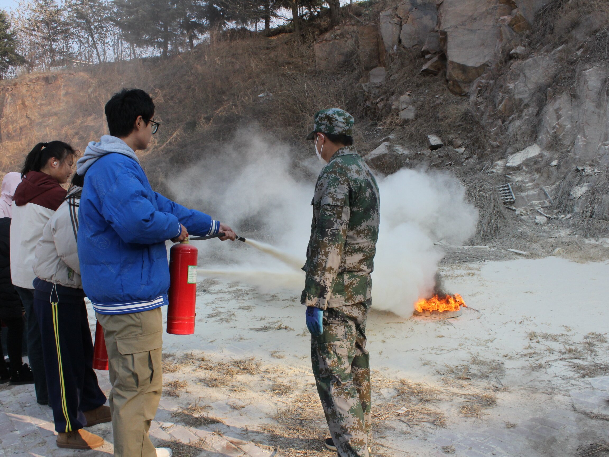 宣讲结束后,同学们前往北苑餐厅南侧平台参加2024新生消防安全演练,专业的消防人员以理论知识讲解和实际操作相结合的方式向同生们普及消防安全知识,同时现场还设置了火源,同学们在专业人员的指导下,轮流参与使用了消防器材,按照灭火动作要领进行操作,正确、迅速、有效的扑灭火源,使得同学们沉浸式的体验火灾场景及如何正确的灭火和自救,取得了良好的培训效果。