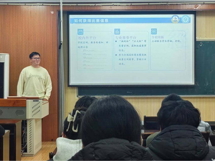 李向阳凭借自身丰富的参赛经历,不仅从组队技巧出发,分享如何依据成员优势互补,搭建高效团队,以及在选题时怎样敏锐捕捉热点与创新点,还悉心介绍多种获取比赛信息的渠道,像专业赛事网站、高校公告栏、行业论坛等。