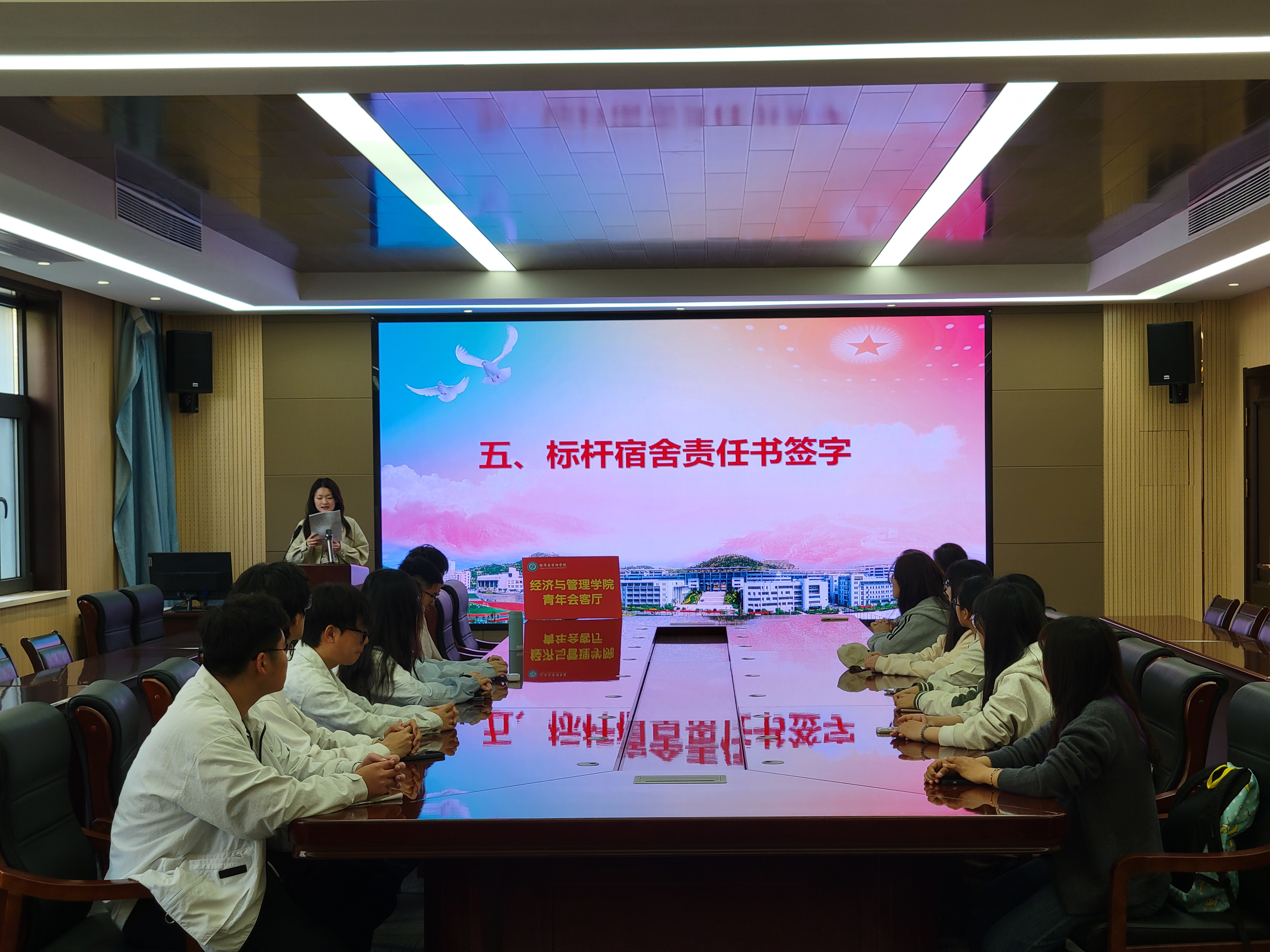 为进一步贯彻落实《国家发展改革委等部门关于加强高校学生宿舍建设的指导意见》文件精神,积极响应学校打造“平安、健康、文明、和谐的宿舍环境”,充分利用好宿舍这一重要育人阵地,努力提升太阳成集团宿舍文明及“一站式”学生社区的建设水平。tyc1286太阳成集团依托青年会客厅,于2025年4月22日下午在经管楼313举办文明宿舍建设推进会暨“经”治宿舍责任书签约仪式。本次活动邀请了各申报宿舍舍长与学生会部分负责人参加,共同为打造文明宿舍出谋划策、携手共进。
