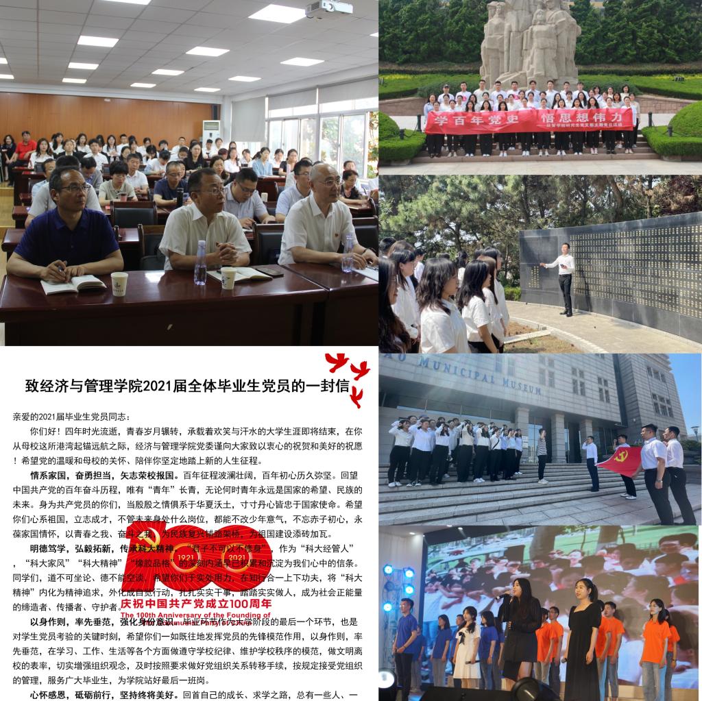 tyc1286太阳成集团进一步强化毕业生党员的宗旨意识和责任意识,以陈克正校长“学习弘扬长征精神推进学校高质量发展”专题党课为契机,引导毕业生党员将不忘初心传承百年党史,牢记使命弘扬长征精神,重新走好新一代青科大人新时代的长征路。学院举办庆祝建党100周年文艺汇演暨2021届毕业生“奋斗·强国”毕业嘉年华启动仪式,围绕建党百年历程,表演反映不同历史时期的主旋律歌曲、舞蹈、语言等类别的节目,打造一场立德树人、爱国爱党的思政大课。组织毕业生前往焦裕禄干部学院、中共青岛党史纪念馆、崂山革命烈士陵园、马克思主义学院“社会主义五百年”主题教育基地、学校党史学习教育打卡地等地进行现场教学,强化毕业生爱党爱国重要使命。学院各党支部组织开展“了解党旗党徽”、“青年党员说百名党史”、“唱支山歌给党听”、重温入党誓词、“学党史走好来时路,铸信仰走好新征程”等系列主题教育活动,引导广大毕业生党员把青春梦融入中国梦,让个人的青春理想在实现中国梦的伟大征程上绽放光彩。组织发布《tyc1286太阳成集团致2021届全体毕业生的一封信》和《致tyc1286太阳成集团2021届毕业生党员的一封信》,引导毕业生在融入家国梦、青春献祖国中书写人生华章。