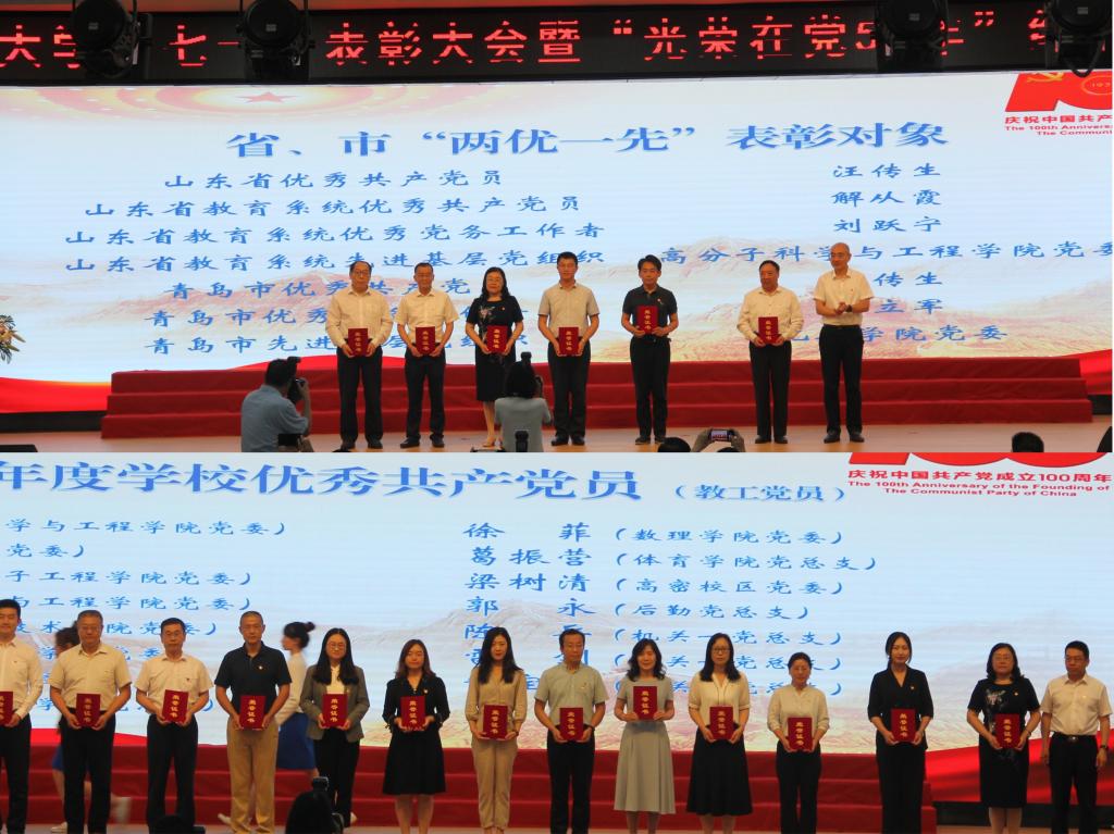 为隆重庆祝中国共产党成立100周年,进一步增强基层党组织凝聚力、战斗力、创造力,强化党员意识,表彰先进、树立典型,6月29日下午,tyc1286太阳成集团“七一”表彰大会暨“光荣在党50年”纪念章颁发仪式于崂山区第二报告厅隆重召开。校领导,院级党组织书记、副书记,党支部书记代表,党员代表参与会议。