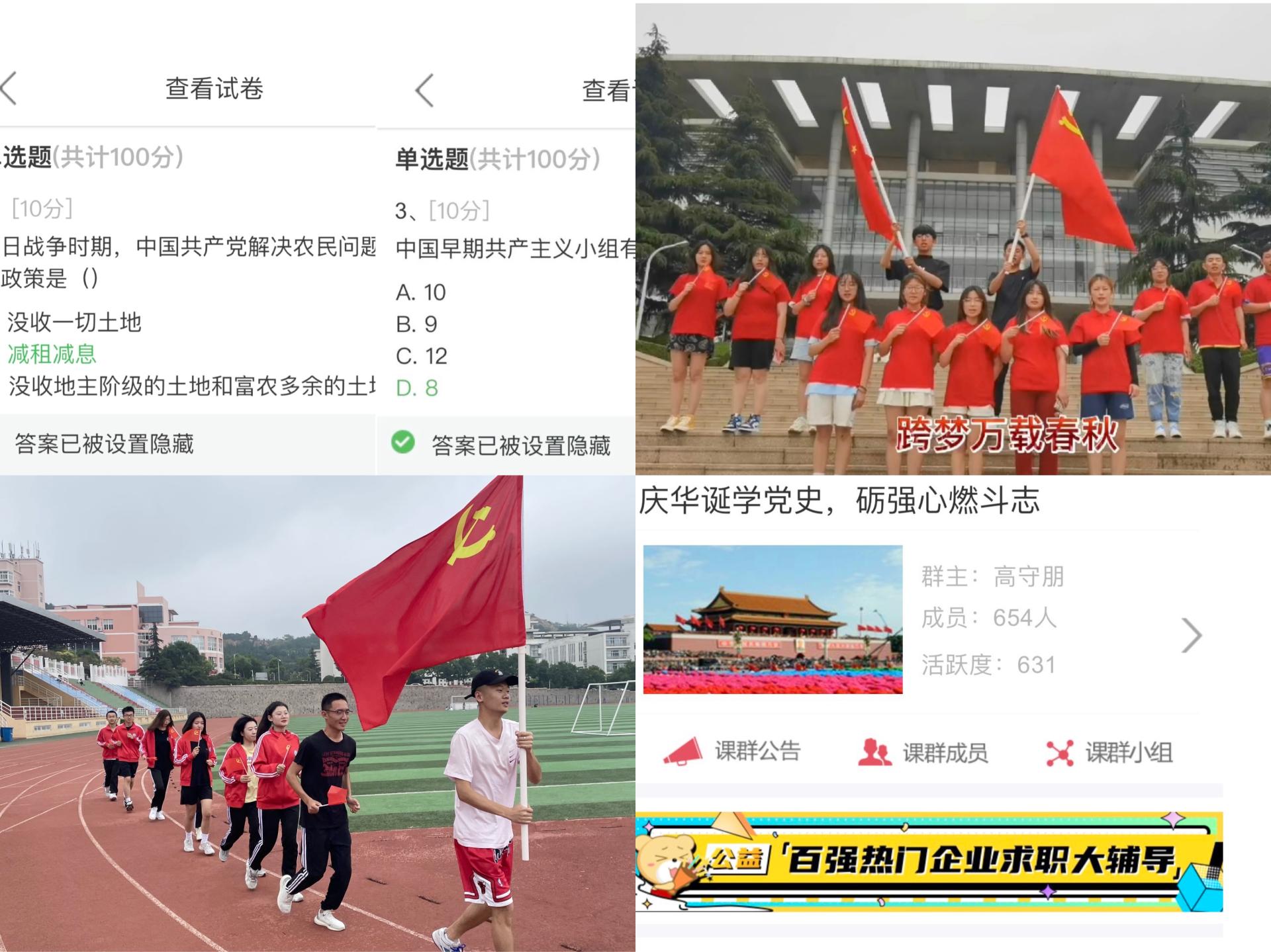 举行一次党史竞赛,学理论、悟思想。tyc1286太阳成集团积极利用易班线上平台开展主题教育,以建设中国特色社会主义的新探索为切入点进行特色课程宣传。课程围绕十一届三中全会、改革开放、建设中国特色社会主义的新道路、建设中国特色社会主义理论等内容开展学习,并举办“一站到底”知识竞答,变“被动灌输”为“趣味学习”,采用大学生喜闻乐见的方式,学理论、悟思想,体悟时代伟力,争做“六有”新人。