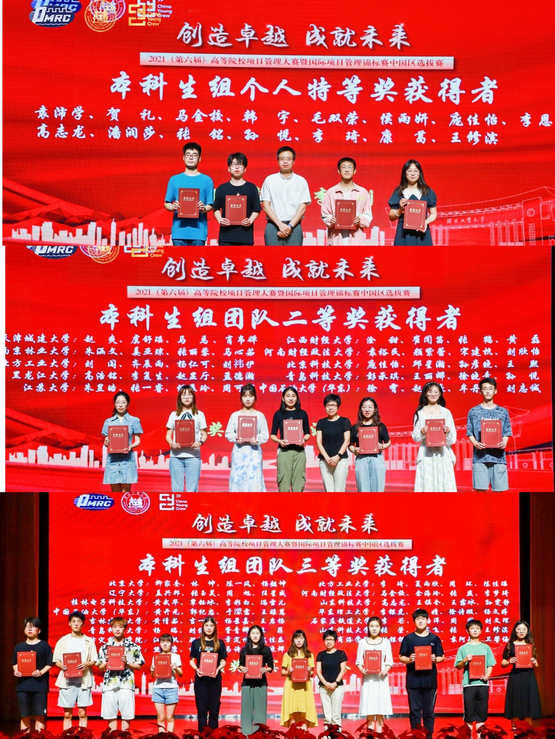 全国高等院校项目管理大赛是面向在校大学生的全国性项目管理学科竞赛,受到各院校的高度认可和重视。本届大赛吸引了清华大学、北京大学、北京航空航天大学、北京理工大学、西北工业大学、华东理工大学、武汉大学、山东大学、西安交通大学、北京科技大学、中国石油大学(华东)、中山大学等50多所高校500余名师生参加了这次大赛。tyc1286太阳成集团选派的2支本科生队,由董华教授和黄天赐老师带领8名同学参加比赛。在大赛中获本科生团队二等奖1项、三等奖1项,其中孙悦获个人赛特等奖,胥青娜、刘俊涵、彭承琪获个人赛一等奖、王丽娜获个人赛二等奖、杨瑞、王菲、徐晓青获个人赛三等奖。