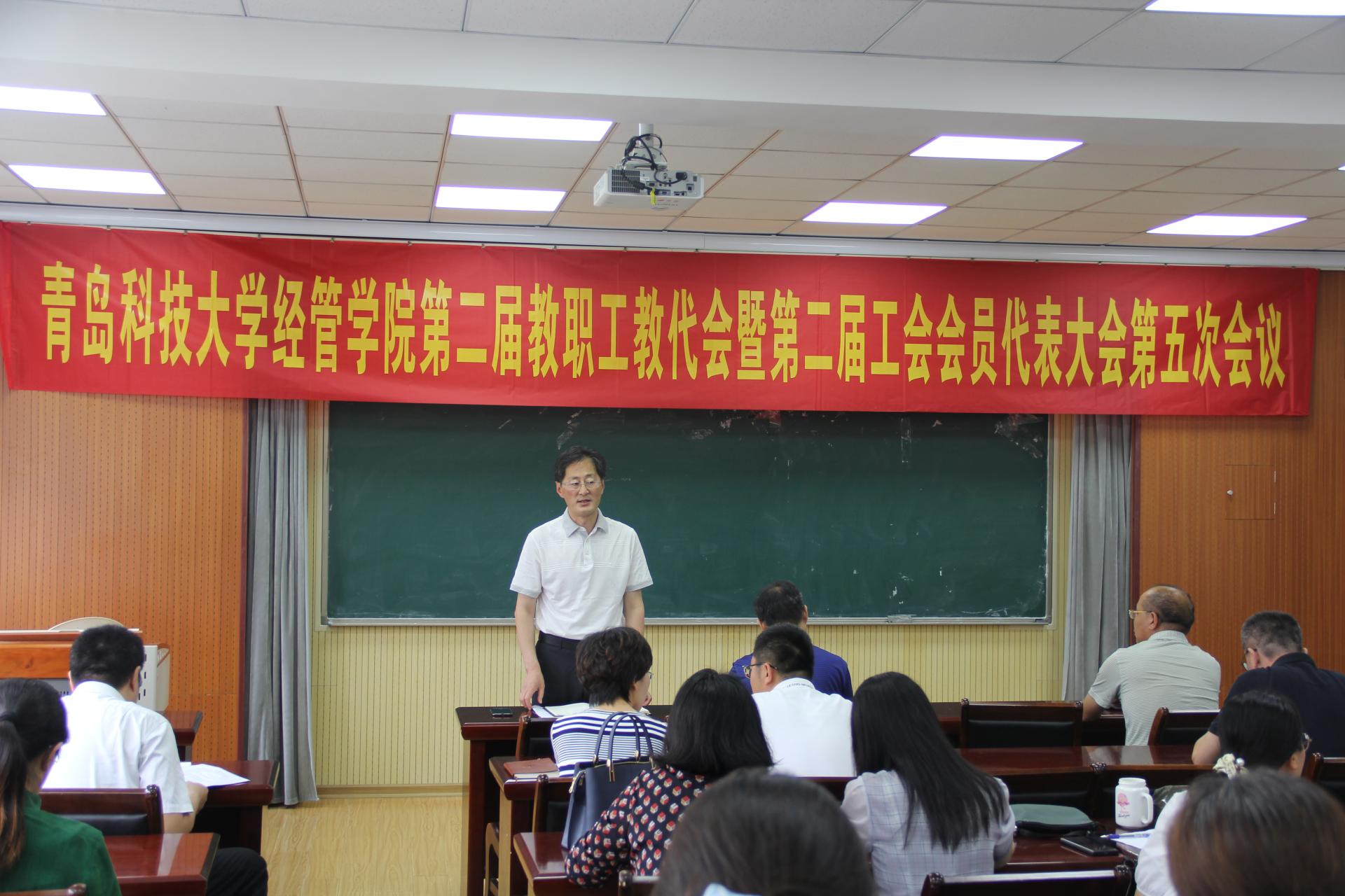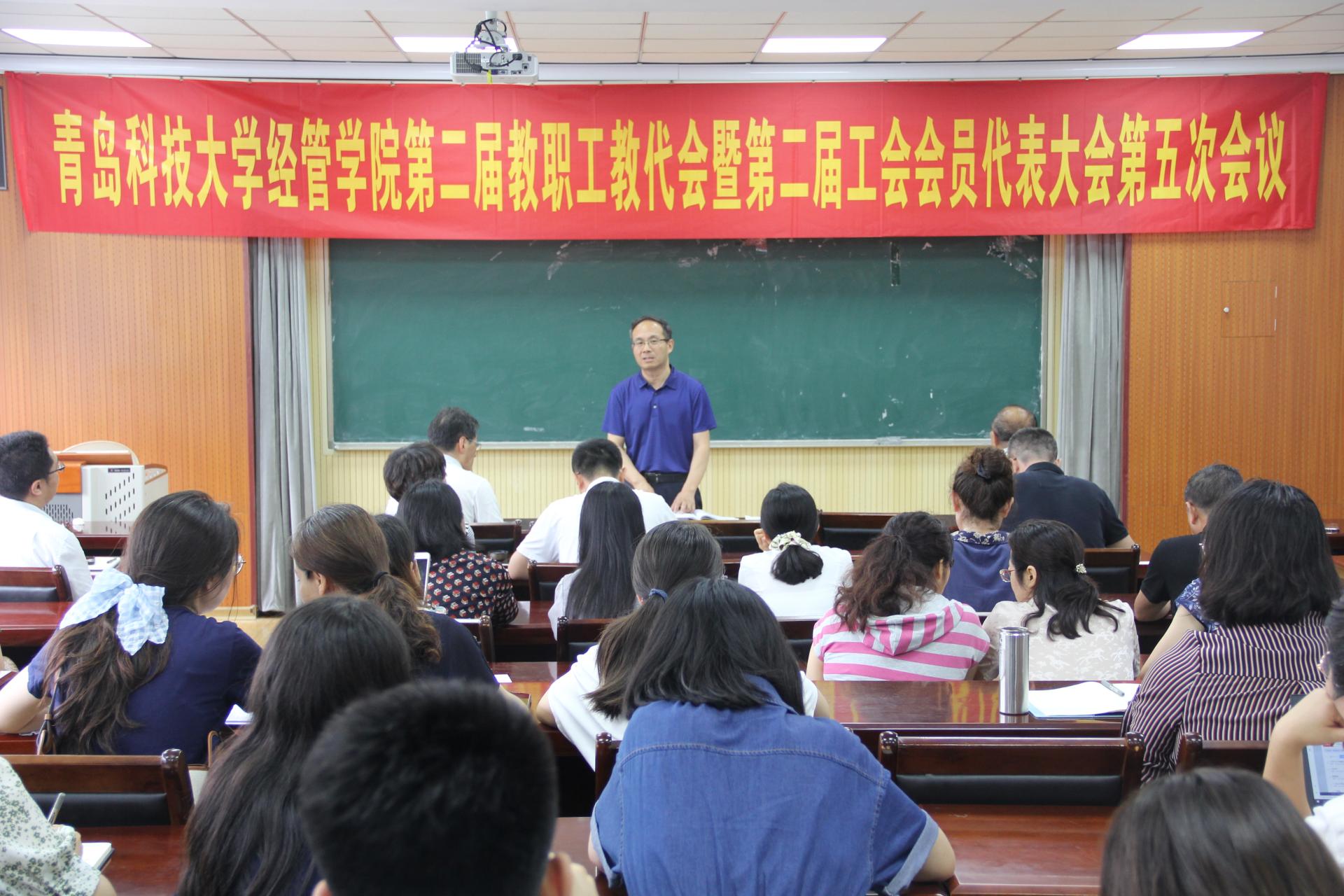 7月17日上午,tyc1286太阳成集团第二届教职工教代会暨第二届工会会员代表大会于经管楼419举行,全体教职工参加会议,学院党委书记李德成主持会议。