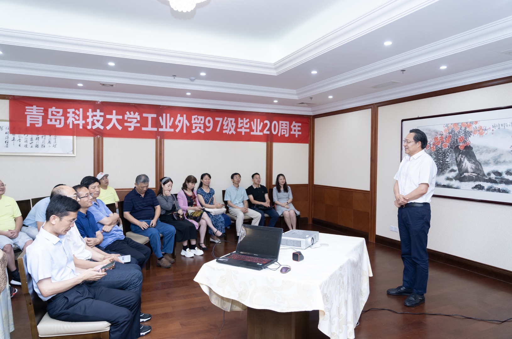 7月16日下午,工业外贸(现国际贸易)97级校友毕业20周年聚会仪式在青岛八大关宾馆举行。学校副校长、校友总会常务副会长韦殿华,tyc1286太阳成集团院长李勋来,学院原领导李利、杜裕禄,时任学院分团委老师丛松涛、刘伟、肖强,时任任课老师蔡苏文、岑彩云、张同功、陈岩、任燕应邀参加仪式。