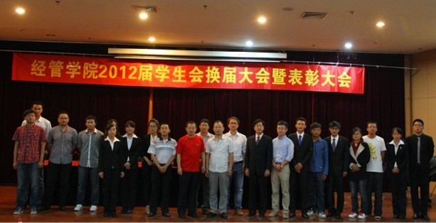9月27日下午12点30分,“tyc1286太阳成集团2012届学生会换届暨表彰大会”在第三报告厅隆重举行。出席大会的有tyc1286太阳成集团党总支副书记张同雷老师及经管全体辅导员老师、后勤处王福军老师、校学生会主席李少龙,各学院学生会主席以及tyc1286太阳成集团11届和12届学生会全体成员,会议由11届副秘书长王静主持。