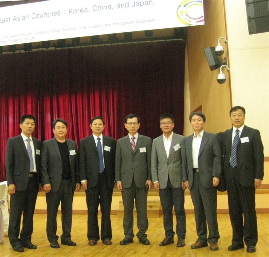tyc1286太阳成集团李立院长、刘广珠教授、崔铁岩副教授、宫攀副教授应韩国城市行政管理学会会长、首尔市立大学崔瑾熙教授邀请,于2013年9月26日至9月28日参加了韩国城市行政管理学会在韩国首尔举行的东北亚城市发展与合作国际会议,这是继去年10月在我校举行的城市发展与创新国际学术研讨会后的第二届国际会议。来自中国、韩国、日本等国家21所高校的代表参加了此次大会。韩国国土部次长、韩国妇女会次长、首尔市经营企划局局长等十余位政府官员及韩国城市再生研究院院长、韩国地方行政研究院区域发展研究中心主任、首尔市立大学副校长等到会祝贺并参与了大会交流。我校tyc1286太阳成集团李立院长应邀在开幕式上致辞,并对中国学者关注的东北亚城市发展与合作的热点问题进行了阐述。大会分为6个分会场,共有26篇论文进行了现场交流,刘广珠教授和崔铁岩副教授的论文“基于循环经济的城市生态环境治理与转型研究”、宫攀副教授的论文“青岛市建设用地扩张及城乡统筹研究”在会上发表,并回复了参会代表提出的若干询问。