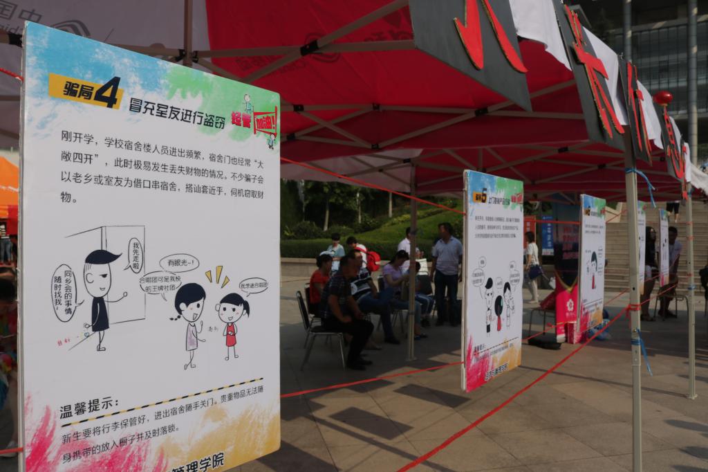 天南海北汇经管,安全教育摆首位。近期发生的大学生受骗信息给学校安全教育敲响了警钟,安全管理也一直是学校管理工作的重要内容,学院特在新生入学时开展新生安全教育系列活动,通过《新生入学指南》、展板及图片联展、导航学长宣传以及学院的官方微信平台等多个渠道对16级新生进行了安全教育,努力营造和谐的校园环境,提高学生安全防范意识与自我保护技能。