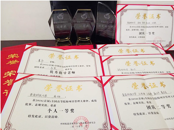 日前,由国家一级学会——中国优选法统筹法与经济数学研究会(双法)下属的中国项目管理研究委员会主办的2016(首届)全国高等院校项目管理大赛在北方工业大学举行。青科大喜获团队一、二等奖和7项个人一、二、三等奖,并荣获大赛优秀组织奖。