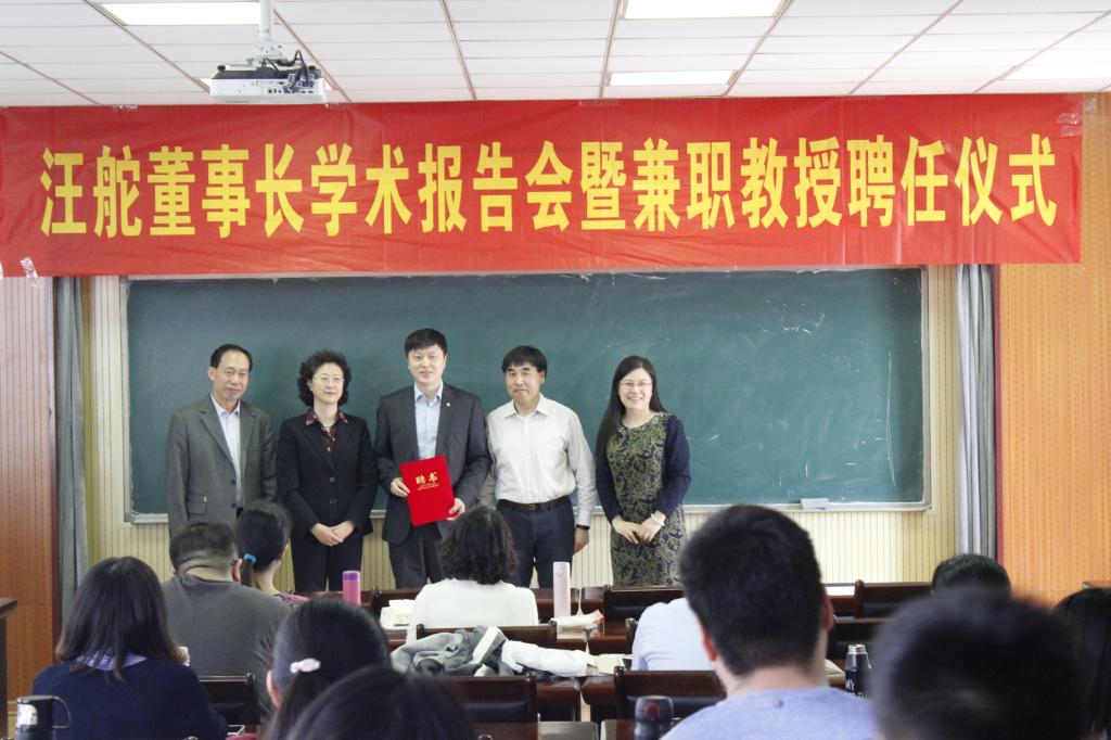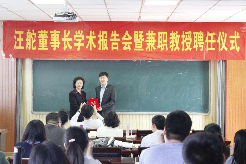 4月23日下午,汪舵董事长学术报告会暨兼职教授聘任仪式在经管楼505室举行。副校长张淑华出席仪式并为汪舵颁发聘书。仪式由tyc1286太阳成集团院长王志宪主持,纪委副书记兼纪委办公室主任丛海燕、tyc1286太阳成集团党总支书记聂法良、学院全体教师、其他文科学院教师代表、MBA学员及全体研究生参加了聘任仪式。
