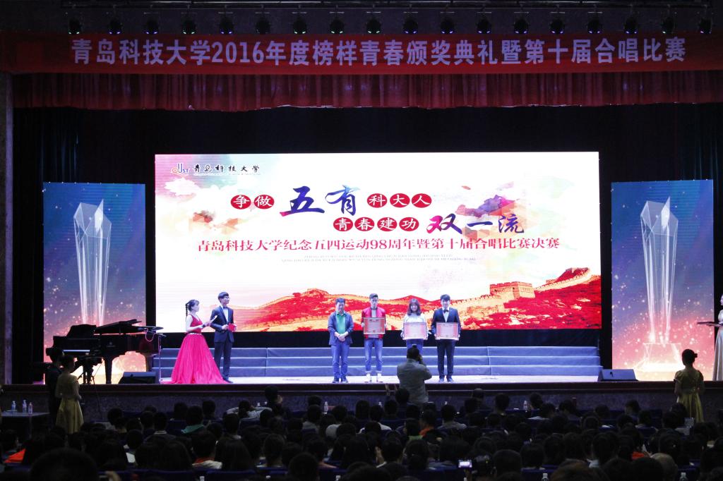 为纪念五四运动98周年,弘扬五四精神,展现在校学生昂扬向上的精神面貌,5月2日晚tyc1286太阳成集团2016年度榜样青春颁奖典礼暨第十届合唱比赛于四方校区西礼堂成功举行。