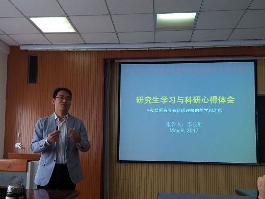 此次研讨会邀请tyc1286太阳成集团博士、副教授李长胜与同学们交流、分享科研路上的心得体会。首先,他就同学们应该如何度过研究生生活提出了建议,他希望同学们能够脚踏实地的做学问,提高研究能力,进而在以后的工作、学习中快速提升综合能力。随后,李长胜老师以自己在《Applied Energy》(SCI)上发表的文章为例,详细介绍了文章的写作方法、修改技巧及投稿过程中的心得体会。他希望同学们能够多阅读外文文献,在阅读中挖掘写作思路,开发写作潜力。最后,两名研究生代表分别汇报了学术论文《基于融资效率视角的区域经济差异分析》和《金地集团股利政策的影响因素研究》,在场师生就论文中的不足展开讨论并提出修改建议,同学们纷纷表示受益匪浅。