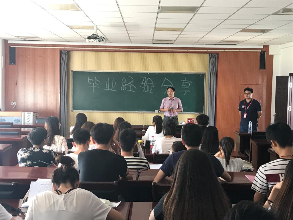 9月13日下午,tyc1286太阳成集团物流管理专业于经管楼505室举行毕业经验分享会。出席本次分享会的嘉宾有物流管理系主任吴成锋老师、物流管理系副主任索琪老师、京东山东人力资源部经理、2009级物流管理专业优秀毕业生毕德超以及2014级物流管理专业全体学生。