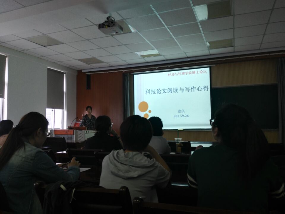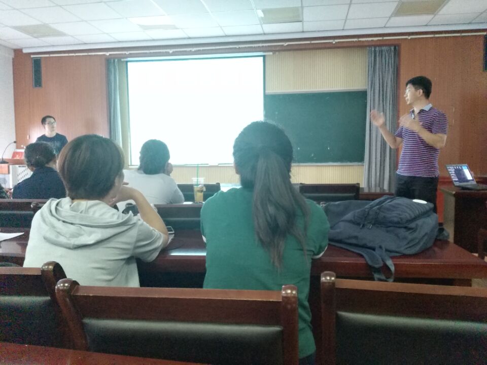 最后,学校新聘任的博士陈明老师与大家分享了自己的博士论文《低碳经济背景下的中国能源产业风险研究》,她详细介绍了能源产业的发展现状,并在研究中运用了多种方法对低碳经济背景下我国的能源产业风险进行了识别、测量、评价和预警,引起了同学们对能源产业的强烈关注。
