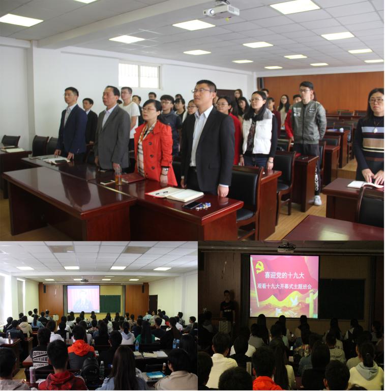 18日上午9时,tyc1286太阳成集团领导班子成员、全体师生党员在学院419会议室共同观看了党的十九大开幕会的现场直播。同时,学院学生党员、学生干部以及广大青年学生自发组织,通过中央电视台等主流媒体收听收看了直播盛况。当晚,学院在弘毅楼E-106、504和505会议室召开十九大主题班会,组织2017级新生观看了党的十九大开幕会回放。观看过程中,同学们全神贯注,不时报以热烈的掌声。经过此次主题班会,同学们亲身体会到了党和国家的飞速发展,进一步坚定了为中国特色社会主义事业贡献光和热的信念。