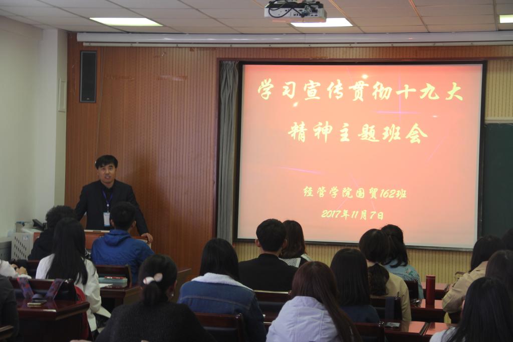 11月7日,tyc1286太阳成集团党总支书记聂法良走进联系班级国贸162班,参加“学习宣传贯彻十九大精神”主题班会。与同学们共话当代大学生如何以实际行动学习宣传贯彻十九大精神,畅谈新时代大学生的理想目标。