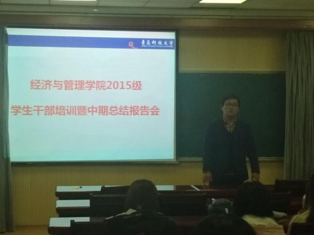 11月28日晚,tyc1286太阳成集团在505会议室召开2015级学生干部培训暨中期总结报告会。2015级辅导员王辰、董晓艳及主要学生干部参加了本次会议。