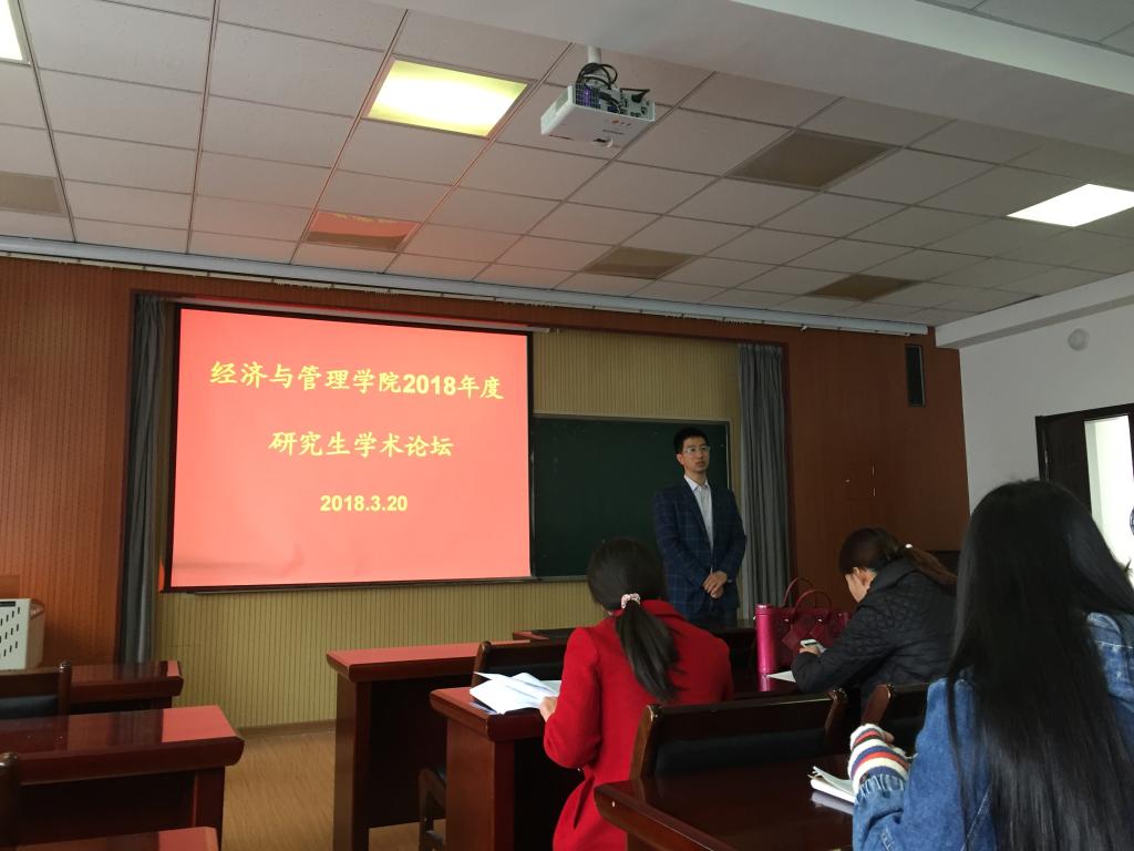 2018年3月20日下午,tyc1286太阳成集团本学期第一次研究生学术论坛于经管楼419室顺利开展,论坛由副院长杨友才主持,学院部分教师代表和学术型研究生参加了此次论坛。