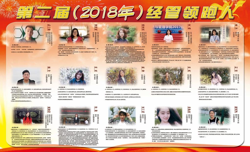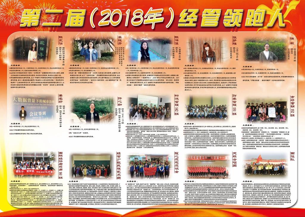 为深入贯彻落实党的十九大和两会精神,引导青年学子坚定理想信念,锤炼意志品质,做爱国、励志、求真、力行的新时代青年,tyc1286太阳成集团特开展“寻找青春榜样 汇聚成长力量“之寻找“第二届(2018年)经管领跑人”活动。