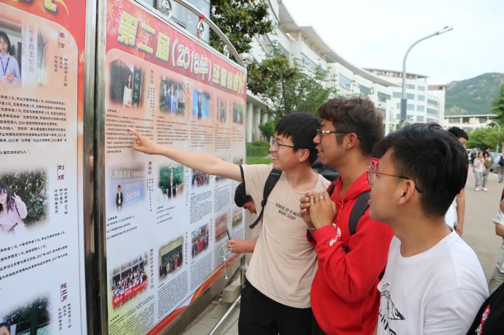 本次活动4月份启动,面向tyc1286太阳成集团全体本科生、研究生,旨在寻找新生模范、学习标兵、创业之星、优秀毕业生及在科技创新、志愿服务、社会实践等领域的典型榜样。经过前期推荐、严格评选、网上投票和公示四个环节,共有22名优秀学子、8个优秀集体获得“第二届(2018年)经管领跑人”荣誉称号,评选活动产生了良好的带动效应,在学院掀起青春榜样风。5月24日上午,印有经管领跑人事迹简介的特色展板在弘毅楼前展览,吸引了过往师生纷纷驻足观看,收获了师生的一致好评。