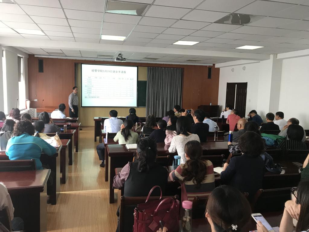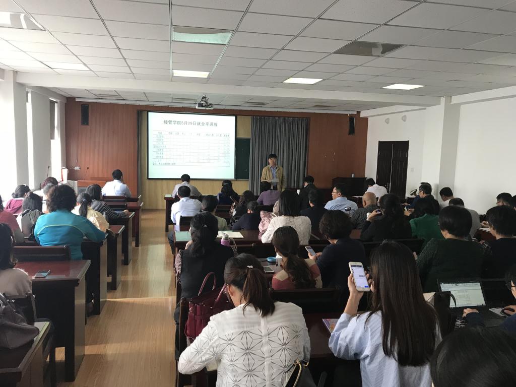 党总支副书记兼副院长刘跃宁就毕业生5.29就业率及暑期社会实践等工作进行了部署。刘跃宁从档案管理规范、安全和完整对学生职业生涯发展的重要性方面进行了解读,鼓励各专业课教师注意引导学生的方式方法,共同做好毕业生就业工作。