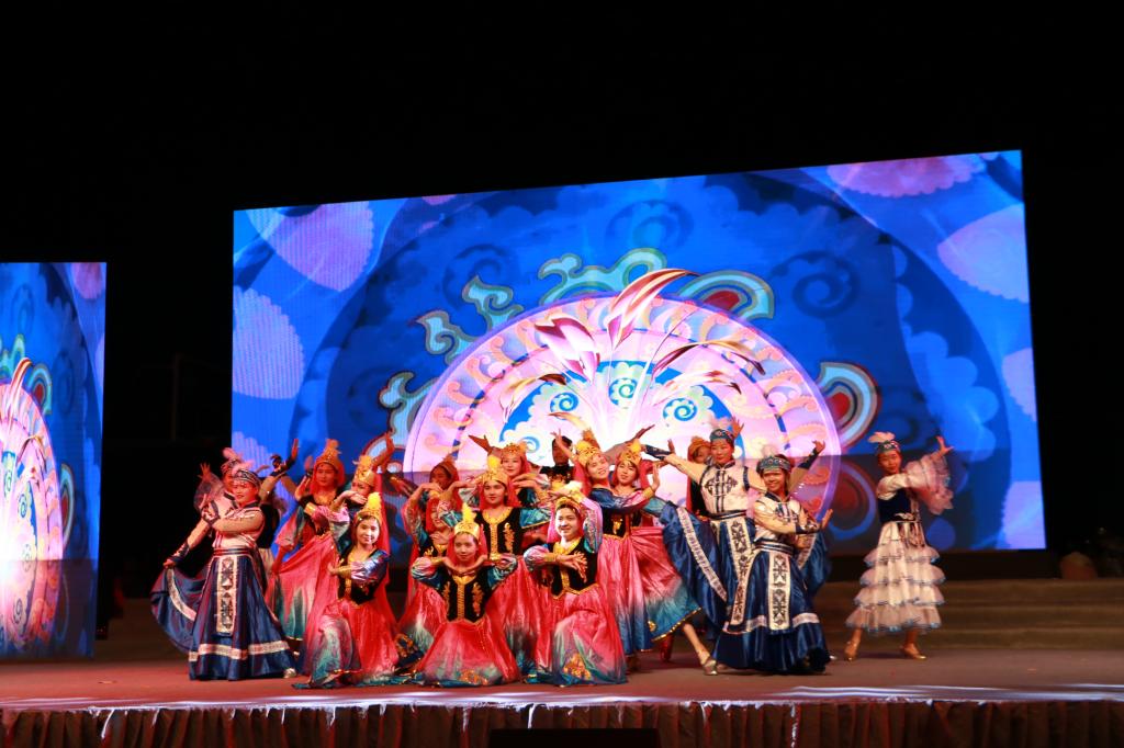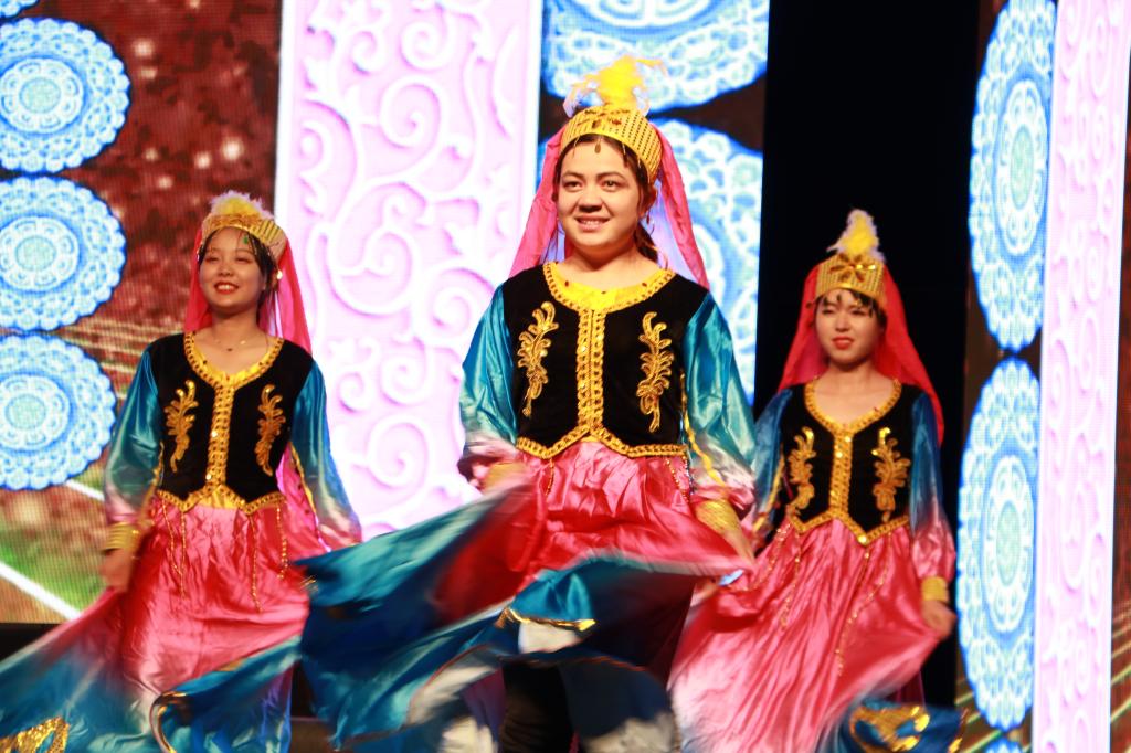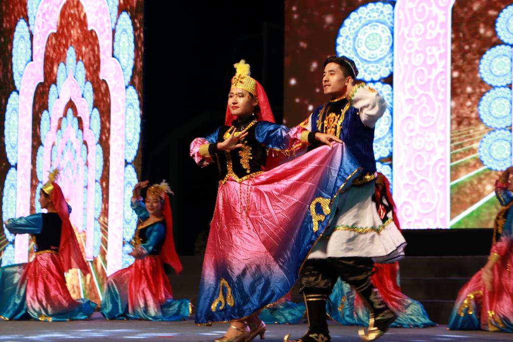 时代江水奔流入海,改革薪火代代相传。大合唱《我爱你中国》动人心弦,唱出了莘莘学子对祖国的赞美与祝福。由tyc1286太阳成集团精心推出的民族舞蹈《盛世欢腾》带领观众走进美丽富饶、幅员辽阔的大美新疆,学生们曼妙的舞姿、跳跃的鼓点将民族元素、中国烙印展现在满含异域风情的舞步里,舞出了经管学子团结向上的精神风貌,舞出了五十六个民族手足相亲,守望相助,舞出了对祖国母亲繁荣昌盛的美好祝愿,呈现出一派中华民族大团结、繁荣、朝气蓬勃的景象,场下欢呼掌声迭起,掀起晚会的小高潮。