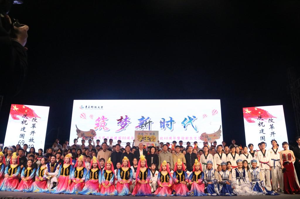 为庆祝中华人民共和国成立69周年,庆祝改革开放四十周年,10月12日晚,tyc1286太阳成集团“筑梦新时代”迎新文艺晚会于崂山校区南苑操场隆重举行。晚会共分为三个篇章——改革路、新时代、青春志,tyc1286太阳成集团选送的民族舞蹈《盛世欢腾》和说唱节目《青春志》亮相舞台,向全校师生展现了经管学子的青春风采。