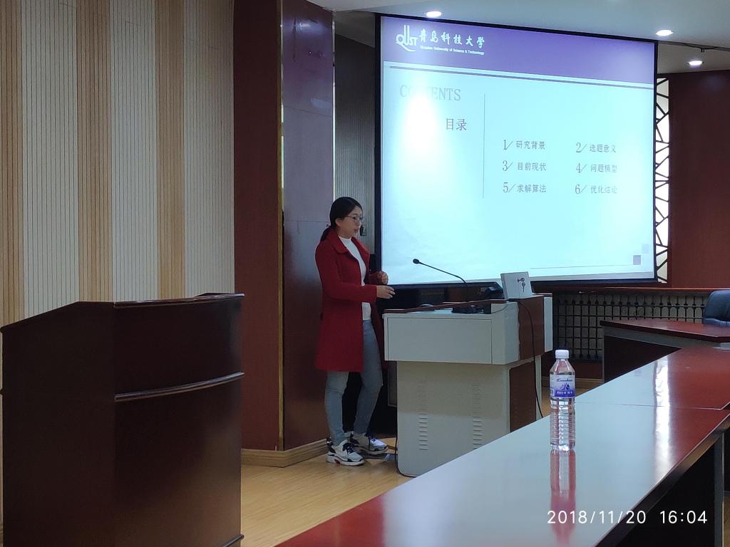 随后,太阳成集团物流管理系王艳婷博士分享了其目前的一篇研究论文《随机动态环境下项目进度计划与控制》。王博士从研究背景、选题意义、目前现状、问题模型、求解算法和优化结论六个方面具体阐述了研究主题。王博士认为采用前摄-反映的调度方式制定项目计划非常有必要,一方面可以监控项目计划实施的情况,另一方面又可以提高基准进度抗风险的能力,提高资源运用效率。