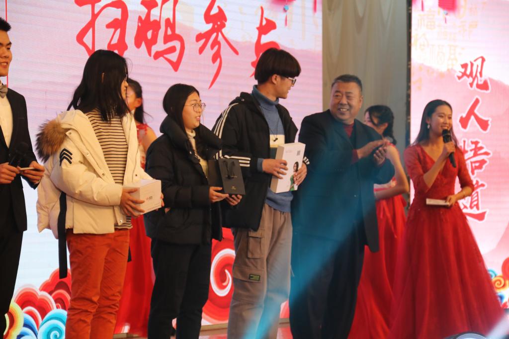 第一篇章结束后的抽奖环节,校党委副书记张元利老师为三位中奖的学生颁奖,随着平板电脑的送出,现场气氛推向又一个高潮。