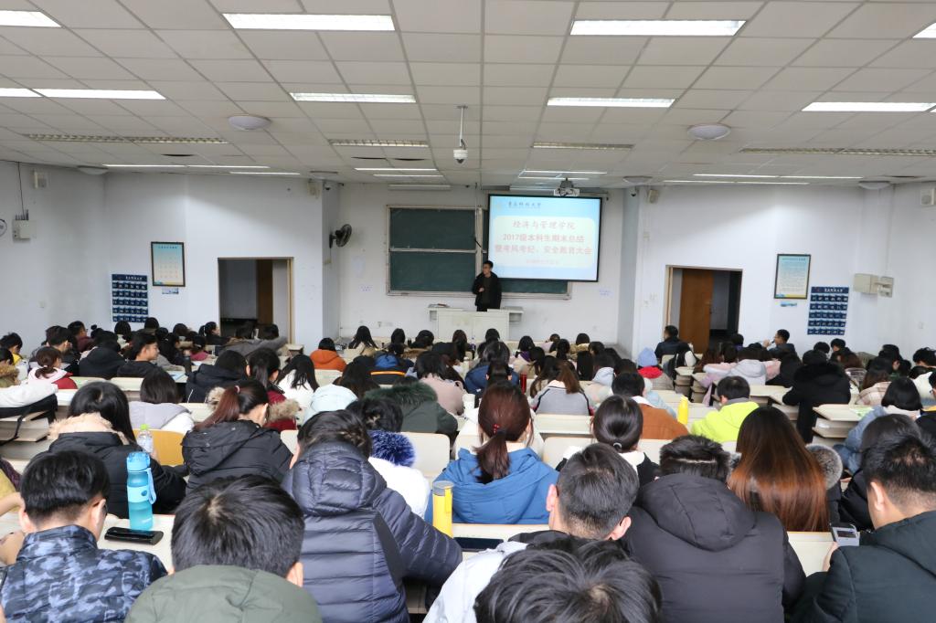为严肃考风考纪、加强学生安全意识、总结本学期工作,12月25日下午,tyc1286太阳成集团于弘毅楼E302室召开2017级本科生期末总结暨考风考纪、安全教育大会。会议由张显全老师主持,2017级全体本科生参加。
