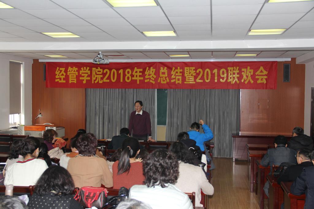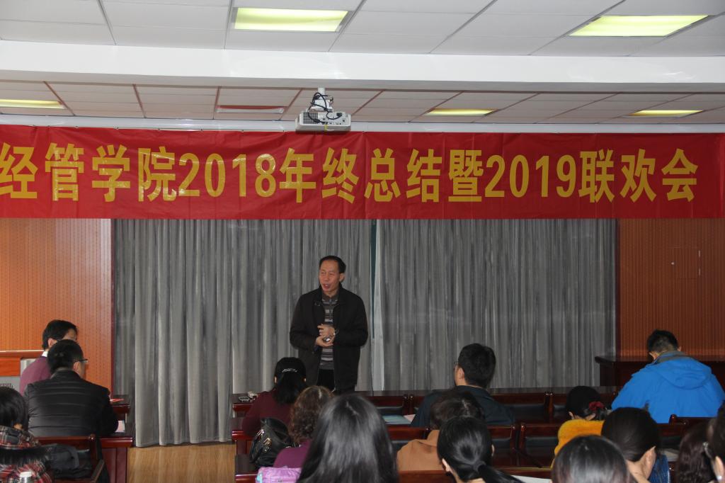 1月19日上午,tyc1286太阳成集团在经管楼419室举行2018年终总结暨2019新年联欢会,tyc1286太阳成集团全体老师参加了会议,会议分为三个阶段,会议由党总支书记李德成主持。
